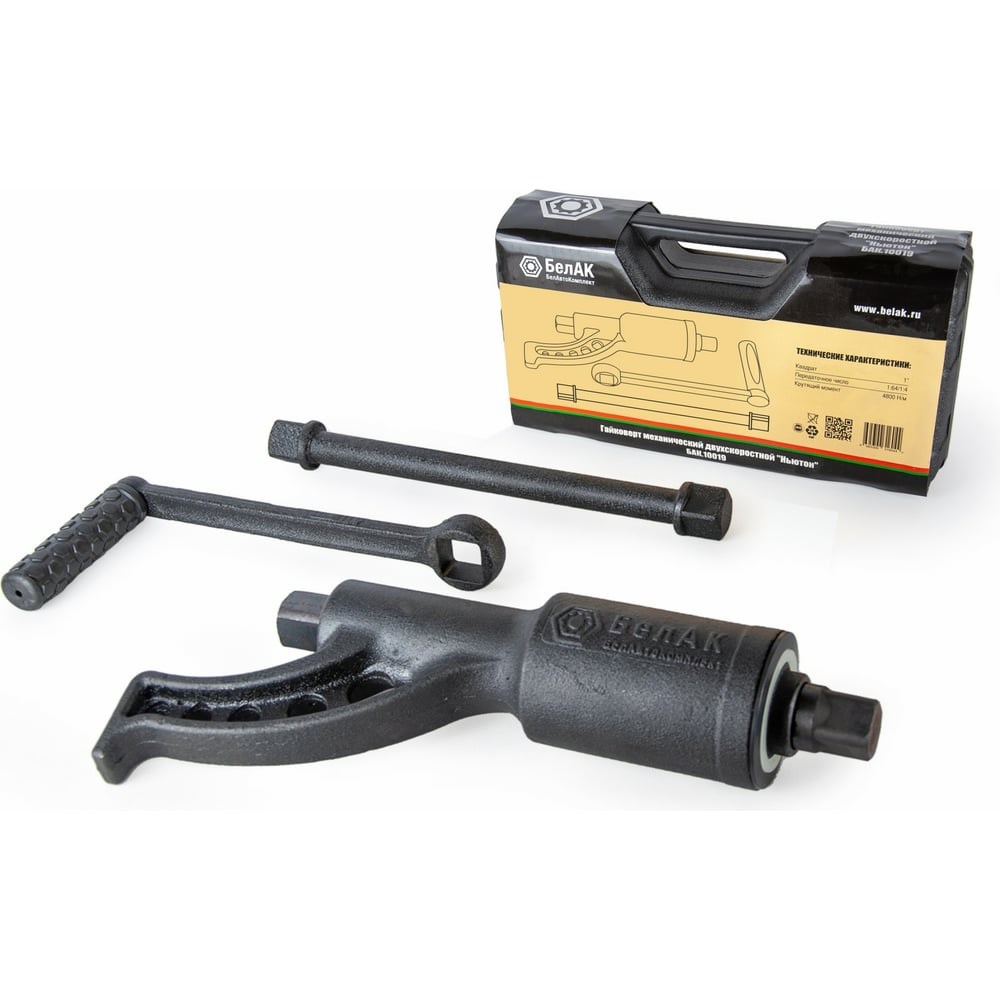 Гайковерт БелАК НЬЮТОН без головок 2х-скоростной БАК.10019 выполнен из высокопрочных материалов, отличается повышенной надежностью и продолжительным сроком службы. Усиление крутящего момента осуществляется за счет планетарного трёхступенчатого редуктора. Фирменный логотип на корпусе, выполненный на этапе отливки, защищает от подделок и является гарантом оригинальности изделия. Данный инструмент служит для закручивания/откручивания тяжело нагруженных болтов и гаек при проведении шиномонтажных работ на грузовых автомобилях. Передаточное число: 1:64, то есть приложенное усилие будет увеличено в 64 раз. Эта модель гайковерта «БелАК» с двумя скоростными режимами обеспечивает эффективное усиление крутящего момента (до 64 раз) для удобного откручивания прочных соединений при минимальной нагрузке на руки. Переключатель скорости вращения применяется для изменения значения передаточного числа усилителя крутящего момента. Смена режимов работы осуществляется посредством вытягивания наружу или вдавливания внутрь переключателя. В положении «низкая скорость» развивается максимальное значение крутящего момента, значение передаточного числа составляет 1:64. Применяется для срыва и окончательной затяжки колесных гаек. В положении «максимальная скорость» передаточное число составляет 1:4. Применяется для предварительного закручивания гаек пред окончательной затяжкой или для быстрого откручивания. В механизме редуктора гайковерта использованы подшипники, а не втулки скольжения, как у аналогов. В комплект входит надежный морозостойкий и ударопрочный кейс, который обеспечит удобное и безопасное хранение инструмента.