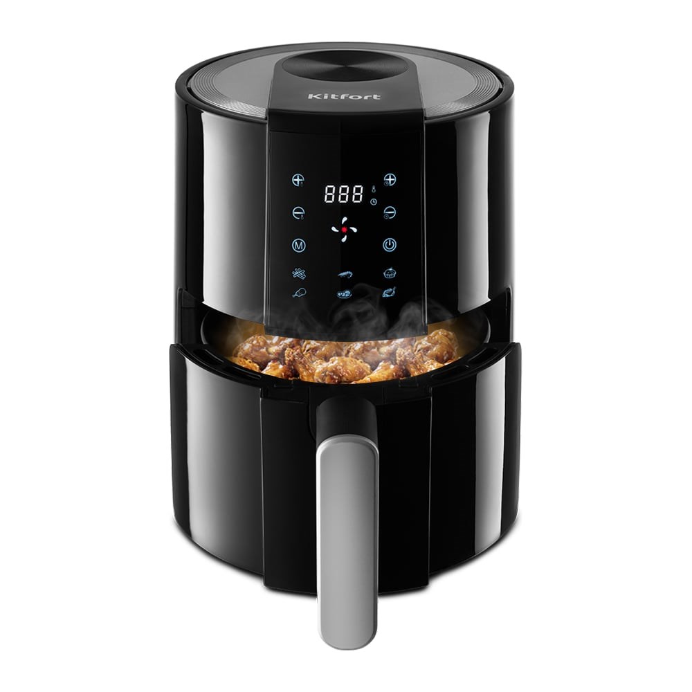 Аэрогриль KITFORT КТ-2225 может использоваться как аэрогриль, а также как аэрофритюрница и духовка и позволяет готовить большинство продуктов с минимальным количеством масла или вовсе без его добавления. Благодаря форме корпуса он отлично впишется в вашу кухню и не займёт много места. Продукты готовятся в специальной корзине, которая вставлена в поддон. Благодаря системе циркуляции горячего воздуха, продукты обжариваются равномерно со всех сторон, получаясь нежными внутри и с хрустящей корочкой снаружи. Аэрогриль имеет 6 автоматических программ. А используя сенсорную панель управления, вы можете настроить нужный нагрев вручную от 80°C до 200°C , время приготовления от 1 до 60 минут. Во избежание случайного выпадения корзины из поддона, на ручке корзины имеется специальная кнопка для её извлечения. Съёмный поддон и корзина имеют антипригарное покрытие, благодаря чему они легко чистятся после использования.