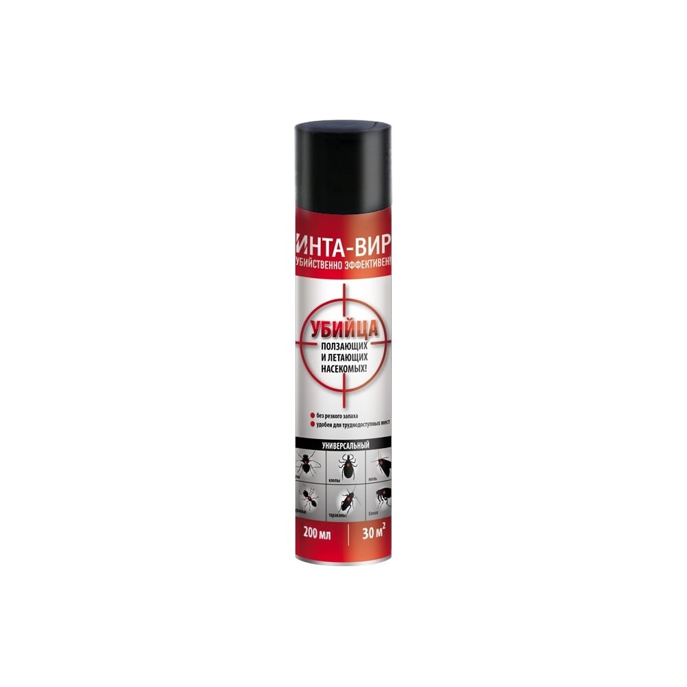 Аэрозоль от всех бытовых насекомых Инта Вир 200мл Сз0101ИНТ01 предназначен для уничтожения насекомых в помещениях. Не имеет резкого запаха и удобен для труднодоступных мест.