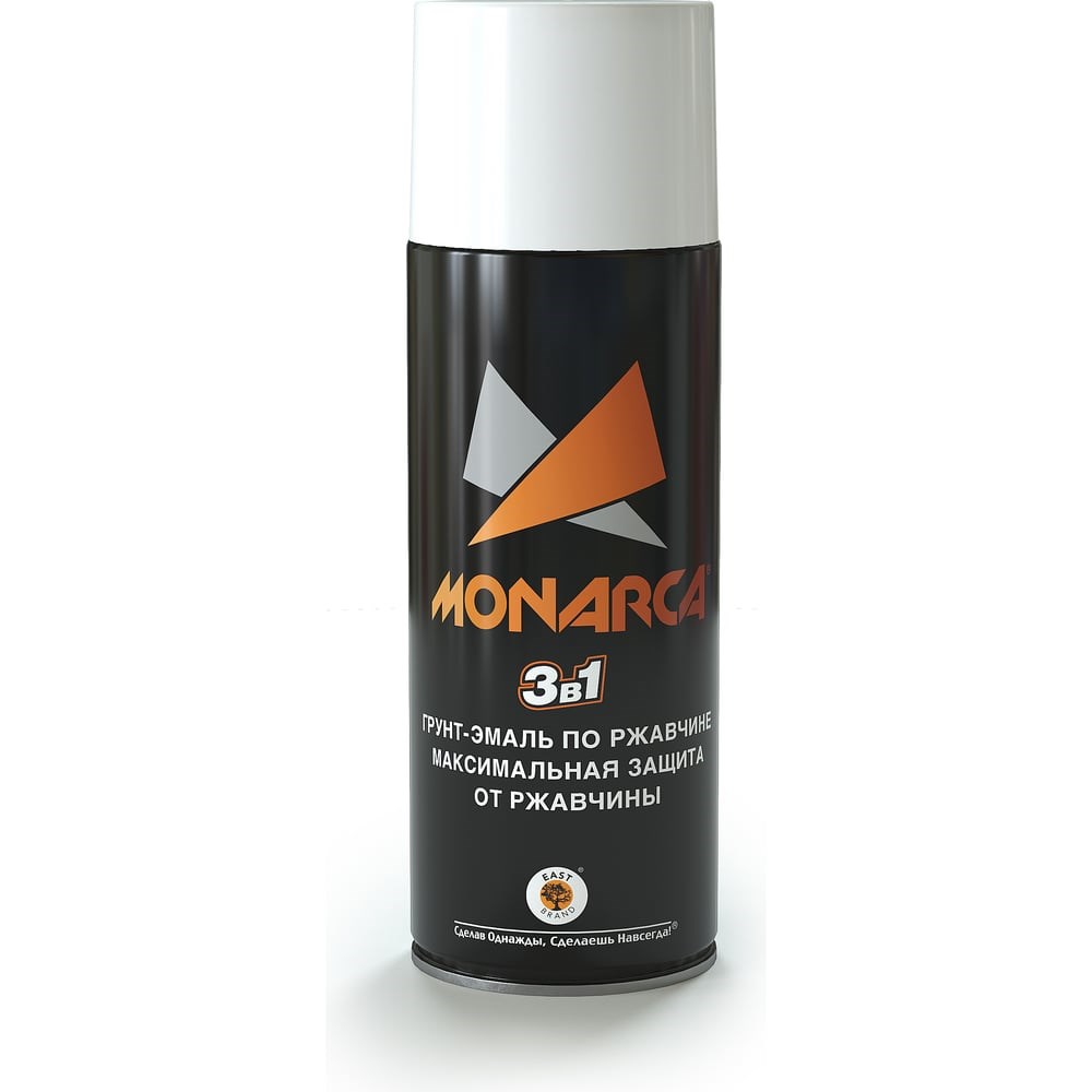 Аэрозольная грунт-эмаль Monarca по ржавчине RAL9003 Белый Глянцевый 89003 рекомендована для промышленного и бытового применения. Сочетает в себе свойства грунта, нейтрализатора коррозии и декоративной эмали. В состав грунт-эмали входит грунт и функциональные добавки против ржавчины, что позволяет обеспечить долговечную защиту металлических поверхностей от коррозии без предварительного грунтования. Покрытие блокирует действие влаги и воздуха на металл, дерево, камень и др. материалы. Финишное покрытие стойко к атмосферным воздействиям и УФ-излучению. Для внешних и внутренних работ.