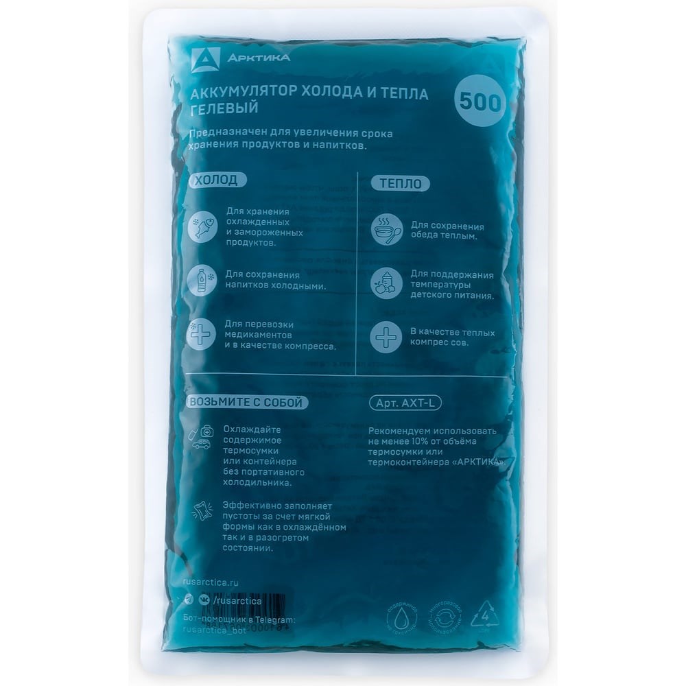 Гелевый аккумулятор температуры АХТ-L выручит в ситуациях, когда нужно надолго сохранить холодную или горячую температуру ваших продуктов и напитков. Незаменим при транспортировке и хранении замороженного и охлажденного, для поддержания температуры детского питания, также будет полезен при перевозке медикаментов и как компресс. Аккумулятор температуры можно использовать многократно, он полностью безопасен при соприкосновении с продуктами питания, легко моется. Рекомендуем использовать вместе с сумками-холодильниками и термоконтейнерами «Арктика» из расчета не менее 10% от объема емкости для хранения, например: 30л сумка = 3л аккумуляторов.