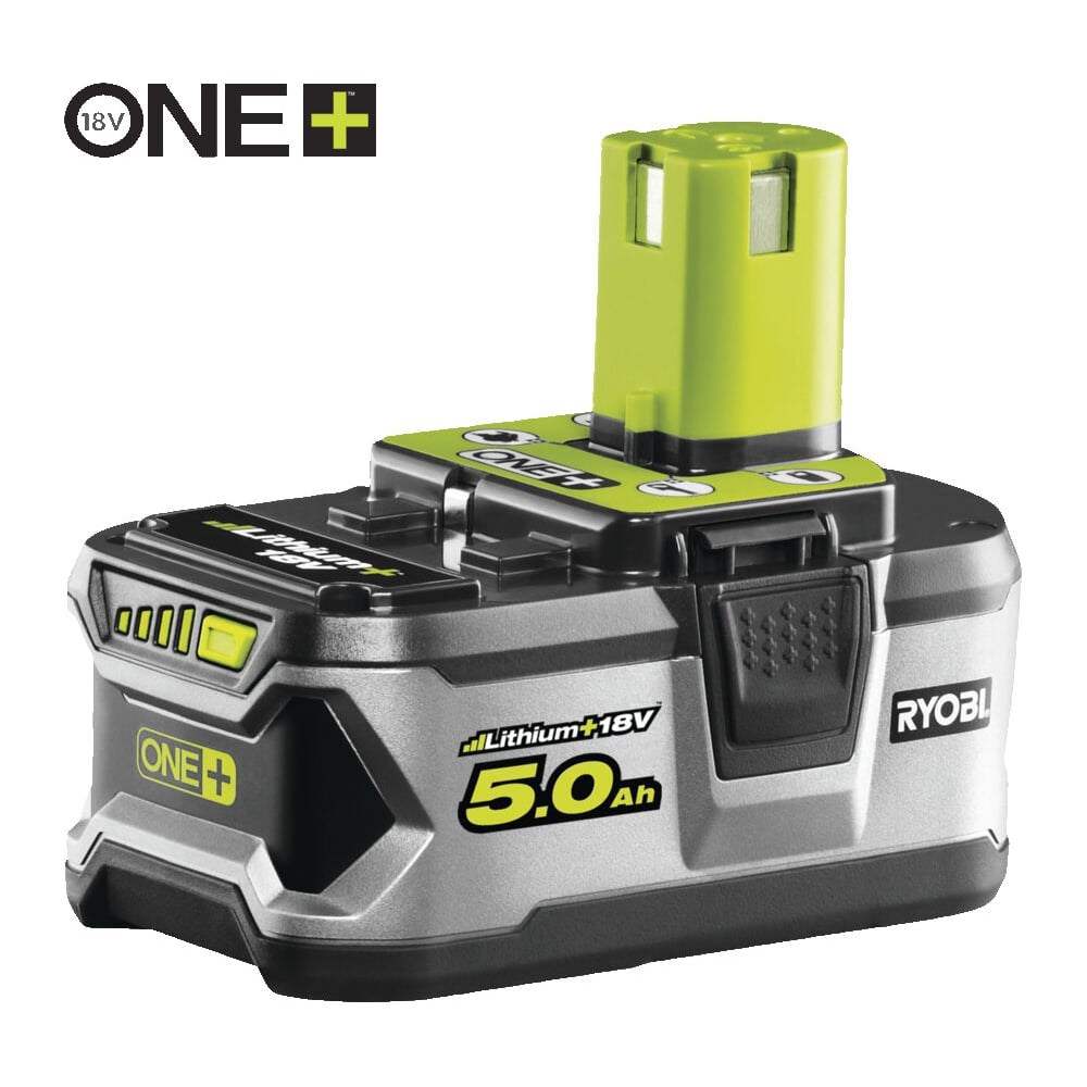 Аккумулятор Ryobi ONE+ RB18L50 5133002433 (18 В; 5 А*ч; Li-Ion) с индикатором заряда. Подходит к электроинструменту Ryobi серии ONE+.