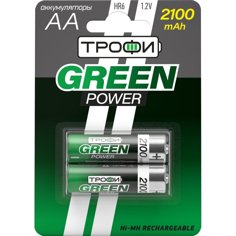 Аккумуляторы ТРОФИ NiMHHR6-2BL 2100 mAh GREEN POWER, C0032099 станут надежным источником питания для часто используемых устройств, нуждающихся в дополнительной мощности. Батерейки-аккумуляторы используются в устройствах, таких как: механизированные игрушки, фонарики, портативные игровые консоли, пульты дистанционного управления и т.д Батарейки-аккумуляторы можно использовать для повторной зарядки.