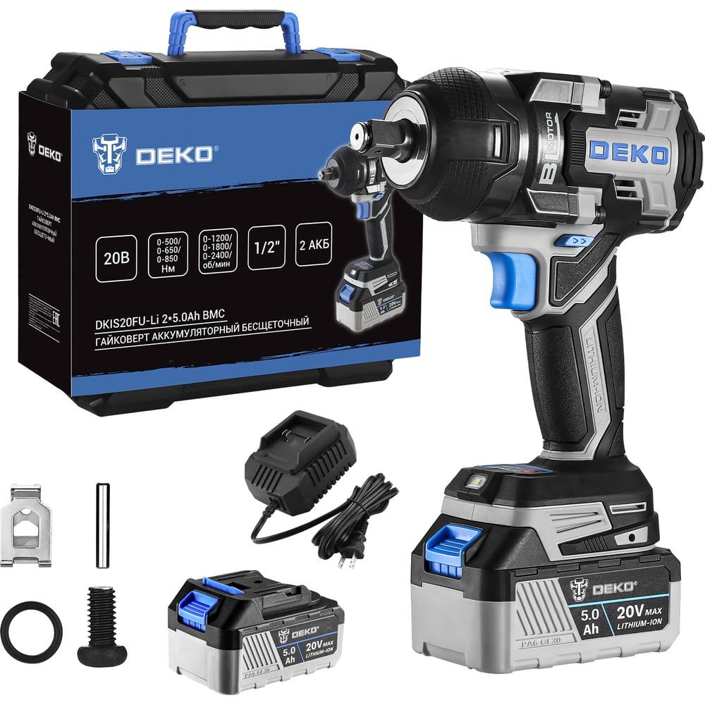 Аккумуляторный бесщеточный гайковерт DEKO DKIS20FU-Li