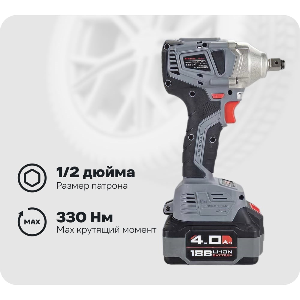 Аккумуляторный ударный гайковерт 18 вольт отличается универсальной работой как с мелким, так и с крупным крепежом без дополнительных переходников и адаптеров. Модель подходит для завинчивания и откручивания любого крепежа, колес, гаек и болтов. Достаточная мощность 330 Нм предусмотрена как для деликатного обращения с легкими элементами, так и для работы в тяжелых условиях. Эргономичный полимерный корпус с резиновыми демпферами обеспечивает превосходный контроль инструмента и его безопасную эксплуатацию. Держатель- квадратный комбинированный сокет 1/2" со стержневой фиксацией и гнездо 1/4" (6,35мм) для бит значительно расширяет область применения и позволяет быстро и легко заменять оснастку. Металлический корпус редуктора защищает детали от повреждения и перегрева. Яркая светодиодная подсветка рабочей области облегчает выполнение операций в затемненных местах.