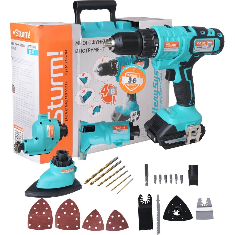 1BatterySystem – универсальная аккумуляторная система. Подходит ко всей линейке аккумуляторного инструмента Sturm Щеточный двигатель уменьшает вес и габариты инструмента Инструмент готов к работе – все необходимые акссессуары в комплекте Подсветка снизу – насадки и оснастка не перекрывают рабочую зону Индикатор заряда на аккумуляторе позволяет проверять заряд не подключая аккумулятор к инструменту Максимальный диаметр шурупа: 8х60 Количество ступеней регулировки крутящего момента: 22+1 Диаметр патрона (мм): 13 Диаметр сверления (металл/дерево/бетон) (мм): 10/20 Максимальный крутящий момент (Нм): 40 Число оборотов на 1 скорости (об/мин): 0-350 Число оборотов на 2 скорости (об/мин): 0-1400