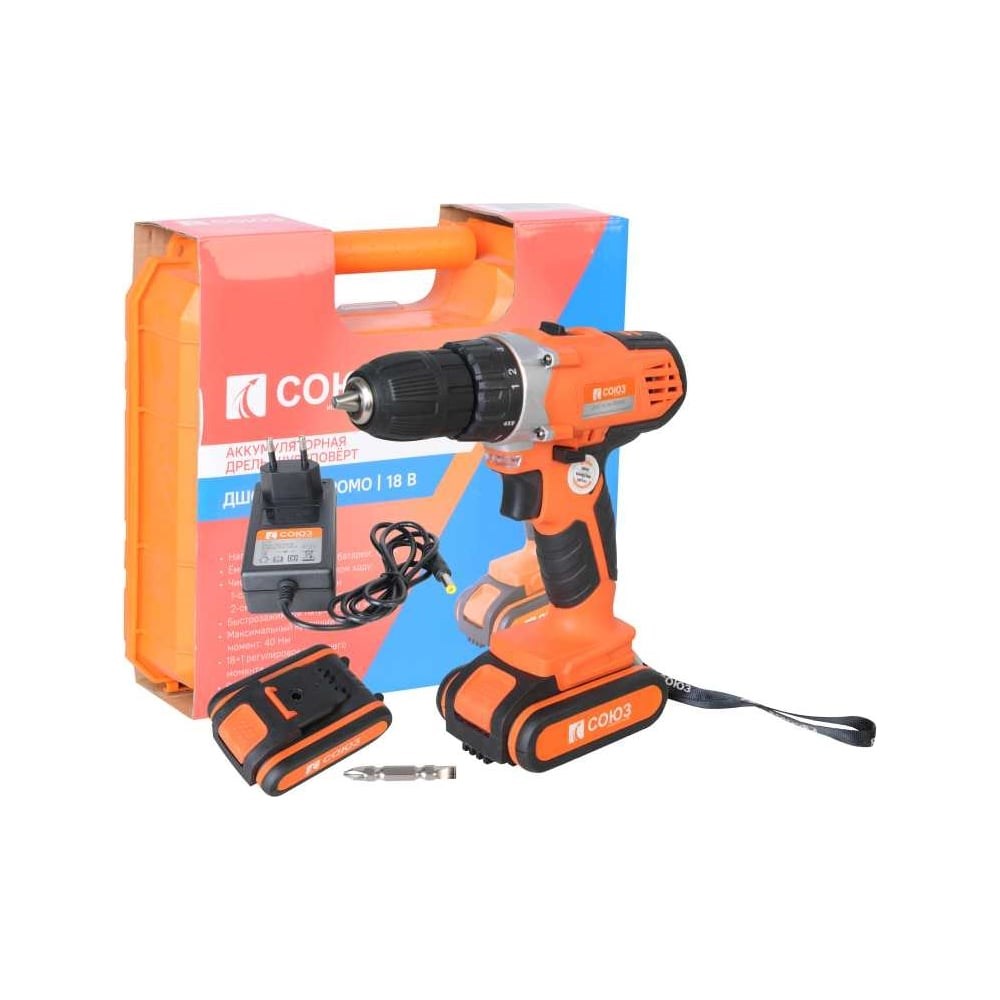 Аккумуляторный шуруповерт СОЮЗ ДШС-18-2К-ПРОМО