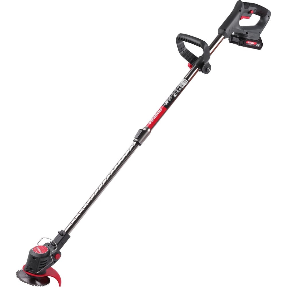 Очень лёгкий автономный триммер ТА-202 с возможностью срезания мелких веток металлическим диском с твердосплавными зубьями. 10 сменных пластиковых ножей для кошения травы в комплекте. Готов к работе сразу (в комплекте два мощных аккумулятора 21В, 1,5Ач и зарядное устройство).