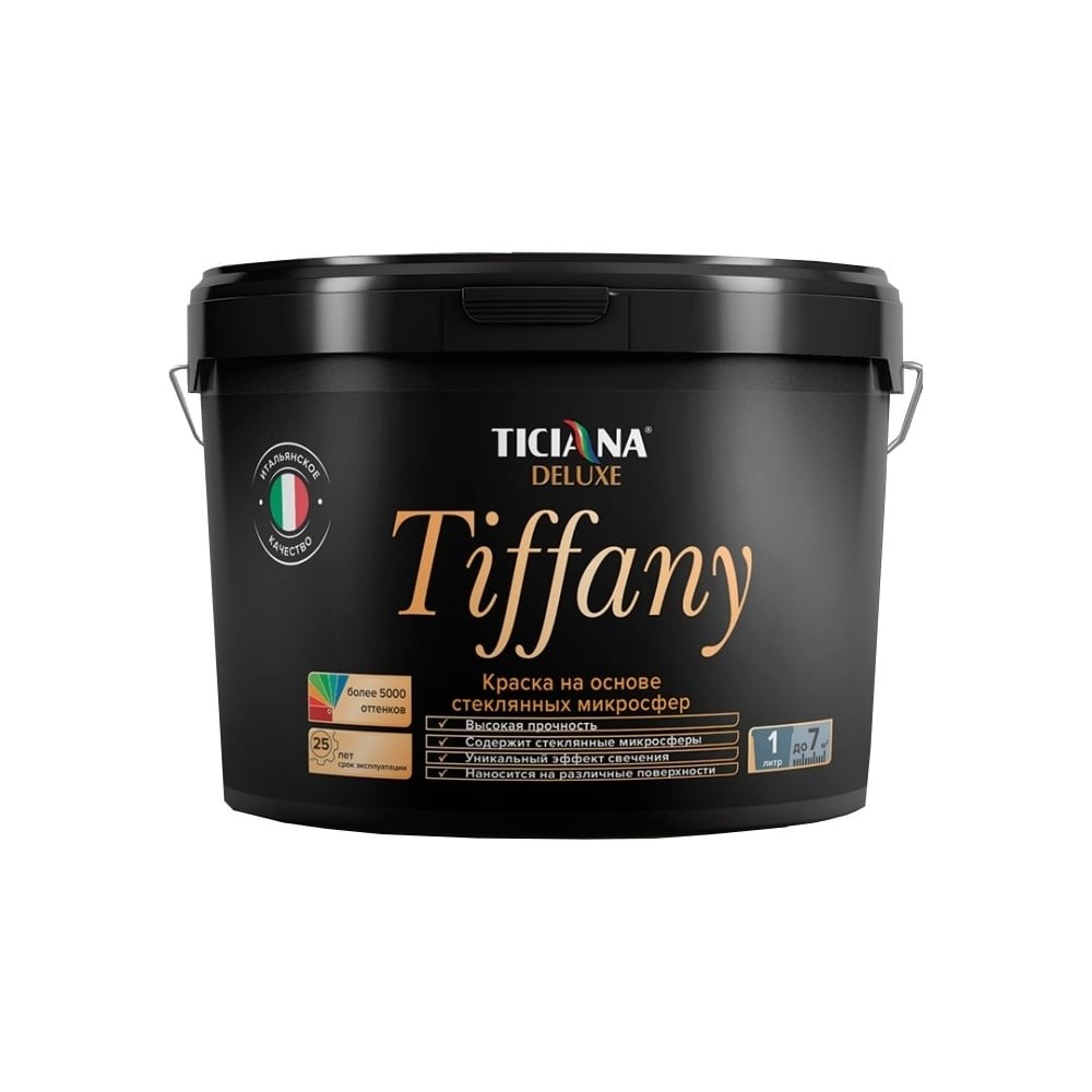 Акриловая краска Ticiana DeLuxe Tiffany на основе стеклянных микросфер 300 1 л 4300002754 - состав на акриловой основе с добавлением стеклянных микросфер, воспроизводит эффект мерцающих кристаллов. Продукт предназначен для получения декоративного эффекта, применяется по минеральным основаниям, а также по различным покрытиям (обои, фактурные краски, штукатурки и т.д.). Используют для внутренних и наружных работ. После высыхания образует покрытие с легкими бликами и переливами при изменении освещения. Колеровка вручную универсальными колерами Ticiana Mix. Возможно добавление перламутровых пигментов (не более 15-30% от общего объема краски), что значительно усиливает декоративный эффект покрытия. Внимание! Фото может отличаться от товара, при выборе ориентируйтесь на технические характеристики.