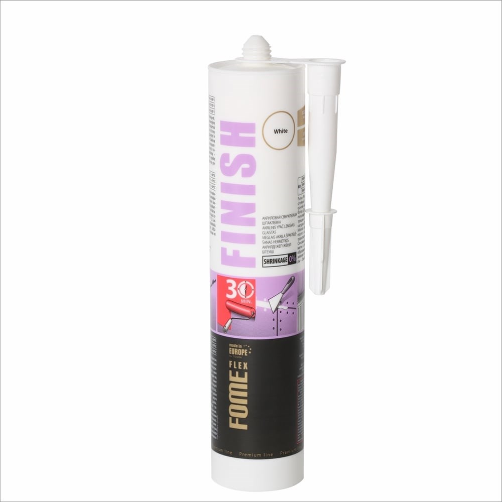 Герметик-затирка акриловый Fome Flex Finish 300 мл 01-4-2-014 11603894 – сверхлегкий шпаклевочный материал на основе акриловой дисперсии для финишной обработки - заделки швов гипсокартона, выравнивания трещин в бетоне, гипсе, кирпичной кладке и штукатурке.