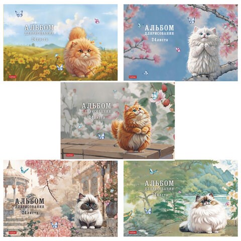 Альбом для рисования А4, 24 л., скоба, обложка картон, тиснение, HATBER, 205х290 мм, Пухляши, 091475, 24А4лтВ
