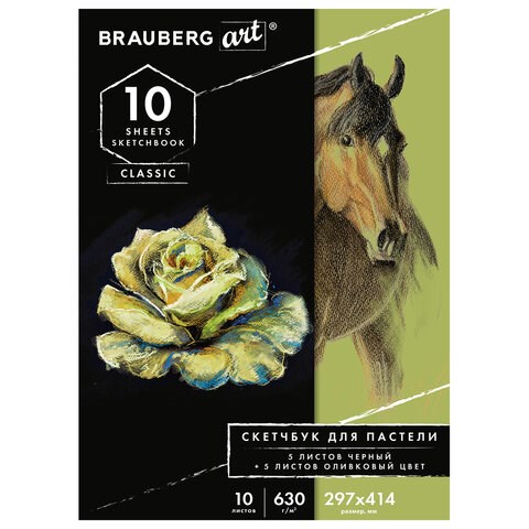 Альбом для пастели, картон ЧЕРНЫЙ+ОЛИВКОВЫЙ 630 г/м2, 297x414 мм, 5+5 листов, BRAUBERG ART CLASSIC, 105924