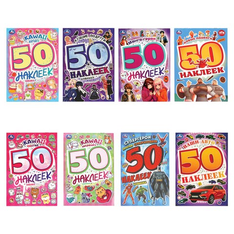 Альбом с наклейками, 50 стикеров, ассорти, 145 х 210 мм, 4 стр., УМКА