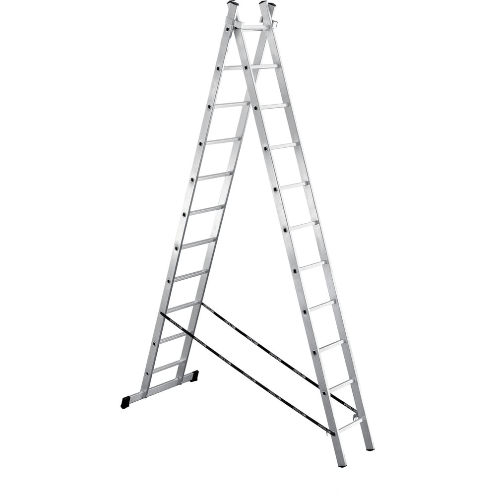 Алюминиевая 2-секционная лестница UFUK 2х11 ступеней 411211 предназначена для выполнения строительных, ремонтных, отделочных или иных видов работ, когда необходимо произвести какие-либо действия на высоте. Изготовлена из алюминиевого сплава и обладает достаточной прочностью. Имеет широкие алюминиевые скобы, обеспечивающие плотный зажим выносной секции и прочные страховочные стяжки, предохраняющие лестницу от самопроизвольного раскладывания.