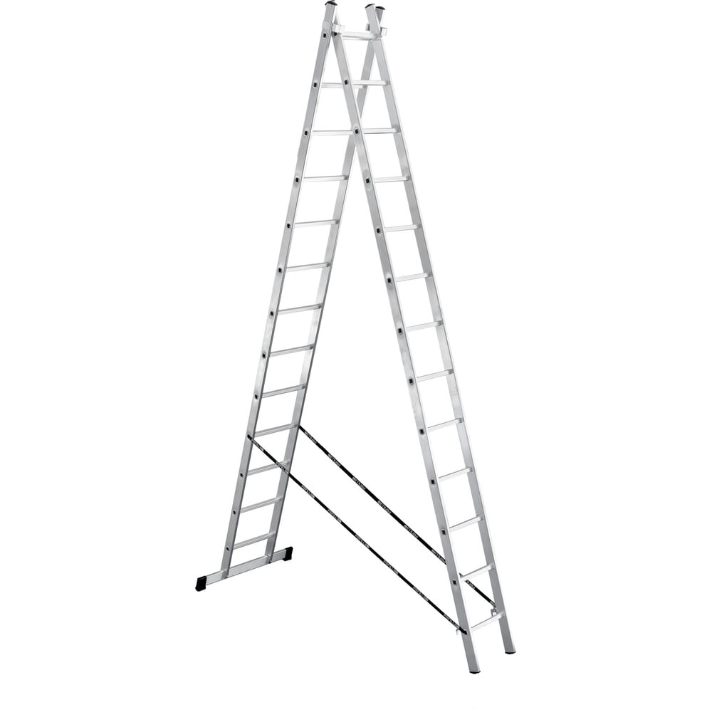 Алюминиевая 2-секционная лестница UFUK 2х13 ступеней 411213 предназначена для выполнения строительных, ремонтных, отделочных или иных видов работ, когда необходимо произвести какие-либо действия на высоте. Изготовлена из алюминиевого сплава и обладает достаточной прочностью. Имеет широкие алюминиевые скобы, обеспечивающие плотный зажим выносной секции и прочные страховочные стяжки, предохраняющие лестницу от самопроизвольного раскладывания.