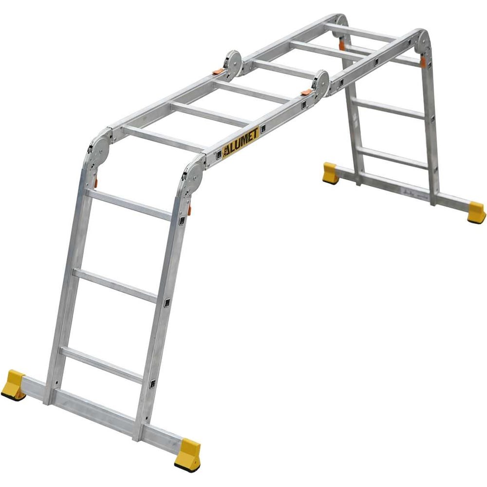 Лестница шарнирная алюминиевая четырехсекционная профессиональная– представляет собой лестницу-трансформер, состоящую из четырех секций,последовательно соединенных между собой стальными шарнирами. Шарнины имеют три угла фиксации,которые обеспечивают лестнице положения: -приставная, -стремянка, -приставная под крышу, -помост только для Т433, Т444(исключительно с штатной площадкой.В комплект не входит).Тетивы, ступени и стабилизатор лестницы изготовлены из высокопрочного алюминиевого сплава(ГОСТ 22233-2018), обеспечивающего изделию прочность и легкость, что важно для транспортировки и установки. Ступени выполнены с рифлением,что способствует безопасному подъёму и спуску.Идеальный помощник на производстве, в офисе, в быту, на даче или гараже.Лестницу можно использовать вне помещения.Конструкция стойкая к воздействию неблагоприятных погодных условий благодаря коррозионностойким свойствам алюминия. Этот фактор является одним из главных преимуществ модели.Особенности лестницы: широкий профиль,усиленные шарниры,два стабилизатора.Данная линейка лестниц подходит для строительства и ремонта на профессиональном уровне,а также для выполнения бытовых работ.!Доукомплектовать лестницу можно: шарнирами HВВ10-16, стабилизатором STB, комплектом заглушек для стабилизатора ZGS!Завод – изготовитель оставляет за собой право в одностороннем порядке вносить изменения в конструкцию, в целях улучшения технических характеристик.на линейные размеры отклонение может составлять +-5 мм, на вес изделия +-5%