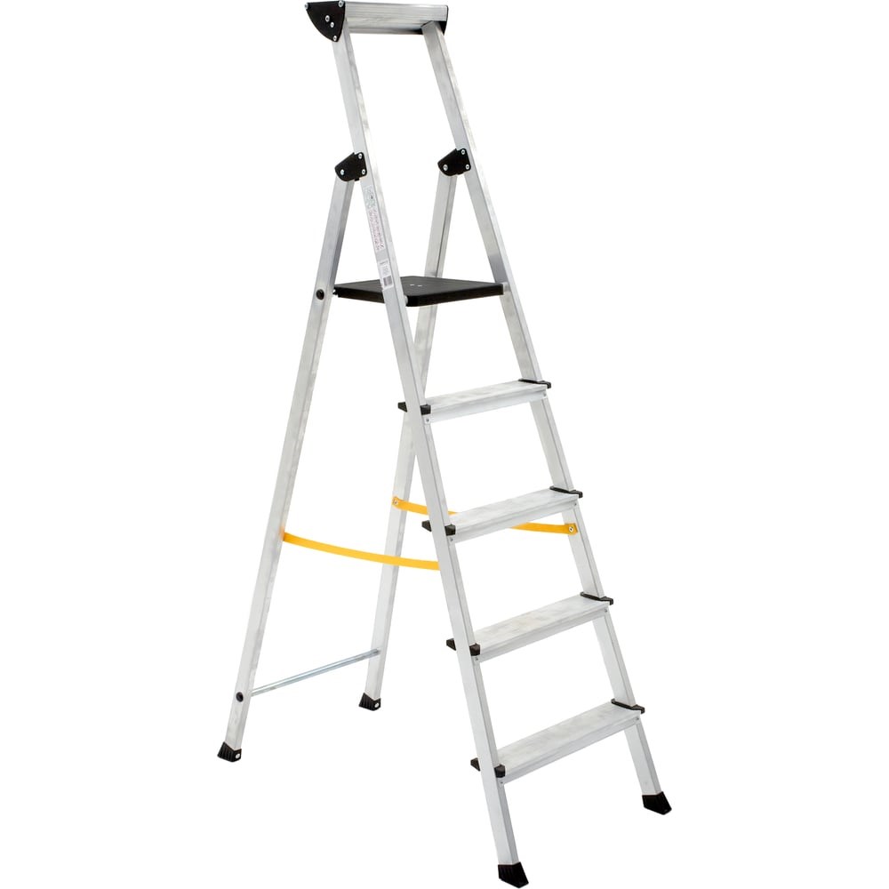 Алюминиевая стремянка с алюминиевым лотком Inforce 5 ступеней СП-01-05 пригодится для малярных, ремонтных и садовых работ. Данная модель способна выдерживать нагрузку до 150 кг. Ступеньки и боковины оборудования скреплены заклепками, что говорит о высокой прочности конструкции. Оснащена широкими ступенями для безопасного подъема и спуска. Благодаря небольшому весу стремянку легко транспортировать. Выполнена из алюминия, имеет малый вес и прослужит долгое время.