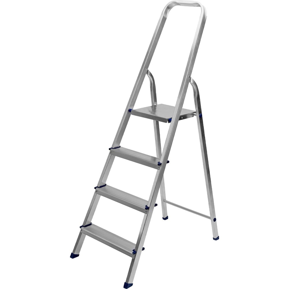 Стремянка алюминиевая Сибртех 97714 с 4 ступенями предназначена для выполнения работ на высоте, превышающей человеческий рост. Высокая дуга безопасности обеспечивает устойчивое положение пользователя. Площадка находится на высоте 80,9 см от опорной поверхности, рабочая высота стремянки составляет 280,9 см (при среднем росте пользователя 170 см). Стремянка пригодится во время строительных и ремонтных работ, позволит без лишних усилий повесить картину или шторы, покрасить стену, достать нужную вещь с антресолей или верхней полки шкафа, а также решить много других бытовых задач.Стремянка устанавливается на плоскую поверхность и не предназначена для работы с электроинструментом.