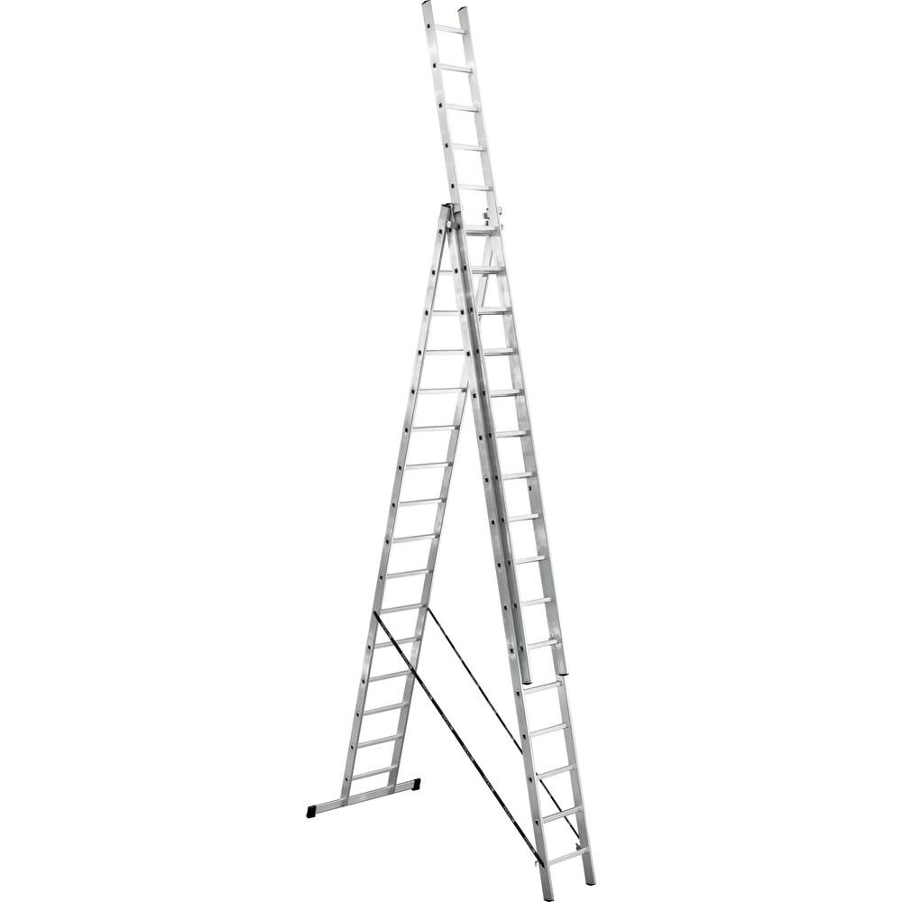 Алюминиевая 3-секционная лестница UFUK 3х16 ступеней 411316 предназначена для выполнения строительных, ремонтных, отделочных или иных видов работ, когда необходимо произвести какие-либо действия на высоте. Конструкция может выглядеть как стремянка, как стремянка с выносной консолью, как приставная лестница с одной, двумя или тремя секциями. Это означает, что область применения модели обширна. В сложенном состоянии лестница занимает мало места. Качественный профиль позволяет ей выдерживать нагрузку до 150 кг. Траверса обеспечивает устойчивость конструкции. Страховочные стяжки исключают самопроизвольное раскладывание приспособления.