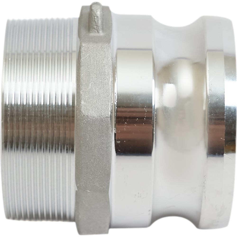 Камлок F-200 тип папа – универсальный соединительный штуцер с наружной резьбой, ответная часть тип Папа. Устройство позволяет мгновенно соединить несколько шлангов (рукавов) между собой, присоединить к различным устройствам и резервуарам, заглушить концы шлангов и адаптеров специальными грязепылезащитными колпаками и так далее. Устройство кулачков муфты обеспечивает устойчивое к вибрации соединение с адаптером без использования дополнительного фиксирующего шплинта или других приспособлений. Камлок создает надёжную герметизацию соединения. Используется при производстве пива, алкогольных и безалкогольных напитков; транспортировка чистой и загрязнённой воды, ассенизация. Производство и транспортировка жидкого цемента, прочих строительных смесей, транспортировка различных химических жидкостей, растительных и минеральных масел, лаков и красок. Арматура для приёма топлива на АЗС и топливохранилищах. Производство и эксплуатация автомобильных и судовых цистерн, судостроение, нефтеперерабатывающая отрасль. Дополнительные характеристики: Тип наружной резьбы: дюймовая трубная коническая R (BSPT); Температура эксплуатации: от -65°C до +93°C; Эксплуатационное давление:9 Атм; Материал изготовления изделия: горячештампованный лёгкий алюминиевый сплав.