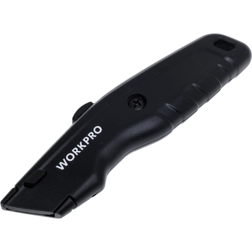 Нож 3-х позиционный строительный алюминиевый (лезвия 3шт) черный WP213008 WorkproБезопасный выдвижной ножКорпус из алюминиевого сплава 3-х позиционное выдвижное лезвиеБыстросменный механизм замены лезвияВ комплекте 3 лезвияМожет использоваться со всеми стандартными лезвиямиЦвет: черный