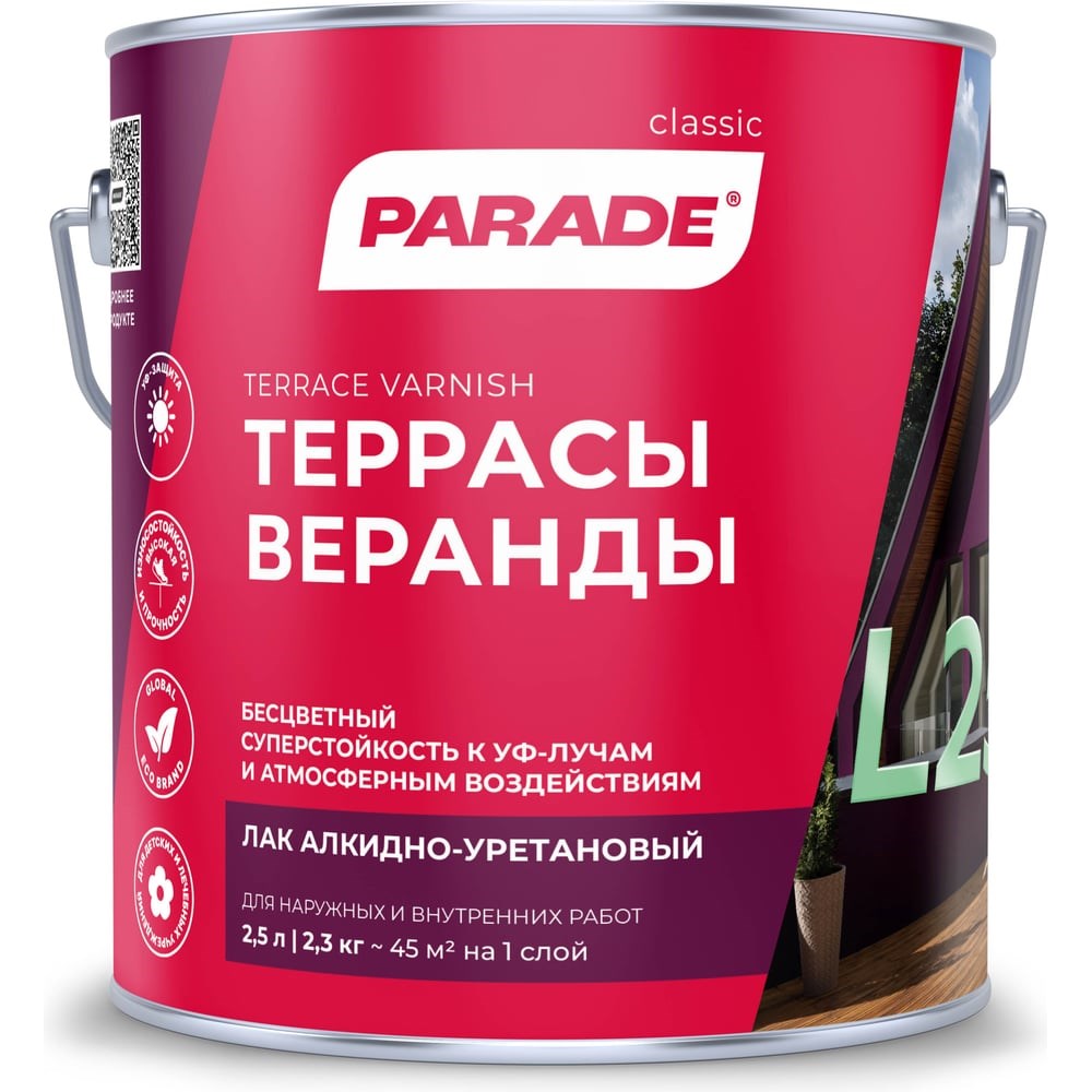 Лак алкидно-уретановый матовый PARADE L25 Террасы & Веранды 2,5 л Россия 90003467431 - высококачественный однокомпонентный лак на алкидно-уретановой основе. Создает надежную защиту деревянным поверхностям, находящимся в неблагоприятных климатических условиях. Образует долговечное износостойкое твердое покрытие с превосходными защитными свойствами и исключительной стойкостью к внешним воздействиям. Обладает прекрасной эластичностью и сопротивляемостью к ударам, влаге, перепадам температуры.