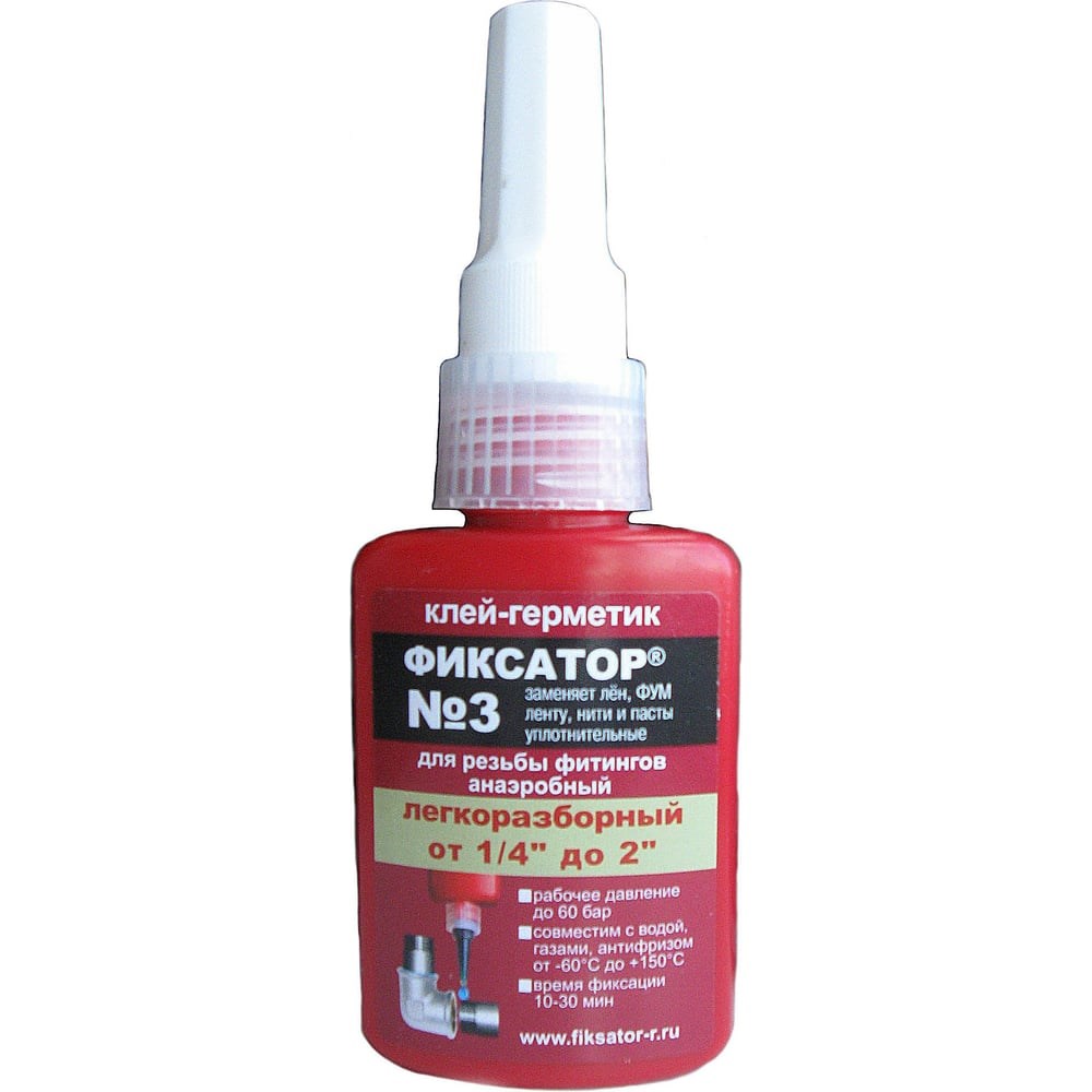 Анаэробный клей-герметик Фиксатор №3 40 г 5258091308003 - однокомпонентный клей-герметик низкой прочности ускоренного отверждения для легкого демонтажа соединений. Продукт полимеризуется при отсутствии воздуха в небольших зазорах между металлическими поверхностями. Применяется для герметизации металлической резьбы труб и фитингов до 2", а также метрической крепежной резьбы до М64 и вал-втулочных сопряжений с уплотняемым зазором до 0.3 мм. Легкоразборный. Разрешен к применению в системах питьевого водоснабжения. После отверждения устойчив к природному и сжиженному газам, тосолу, бензину, дизельному топливу, антифризам и химически активным жидкостям. Защищает резьбу от самоотвинчивания, коррозии и вибрации.