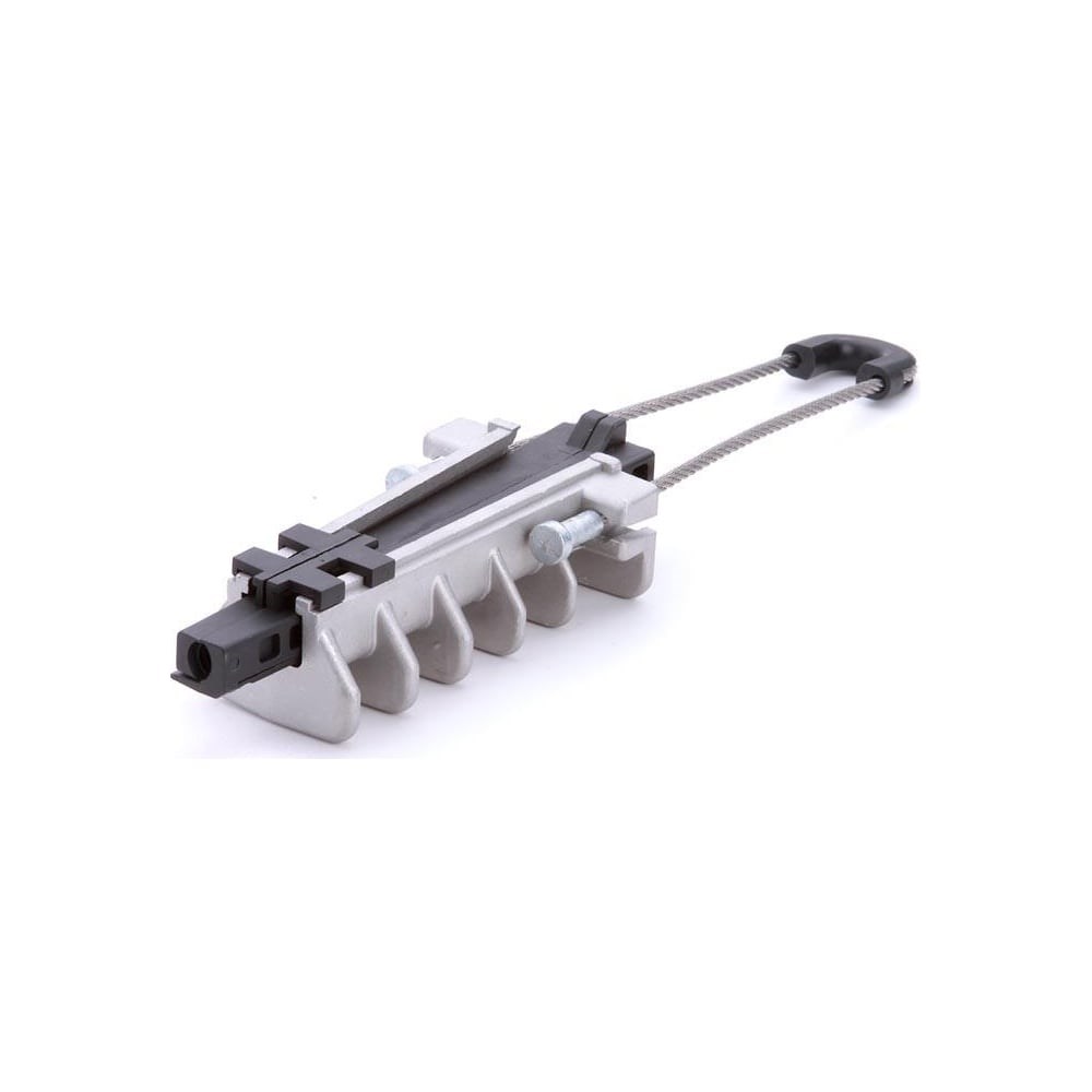 Анкерный зажим КВТ ЗАН-1500 PA 1500 58127 используется для крепления СИП совместно с изолированной несущей нейтралью к крюкам и кронштейнам опор линий электропередач. Саморегулируемые клинья обеспечивают надежный зажим провода нейтрали без повреждения его оболочки. Гибкий тросик с изолированным седлом позволяет устанавливать на кронштейне до трех зажимов.
