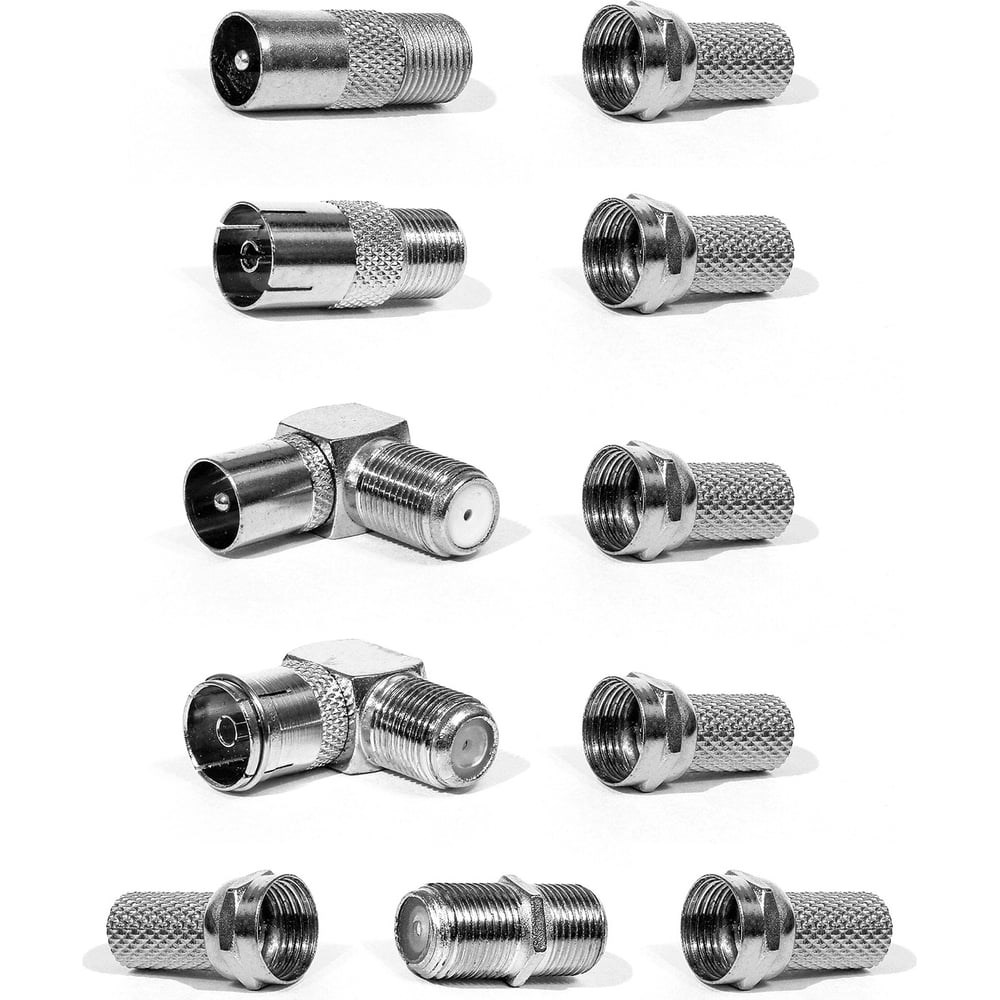 Антенный/телевизионный разъем DORI Набор №2 16832 предназначен для подключения эфирного, спутникового и кабельного телевидения с помощью радиочастотного кабеля. Переходники изготовлены из никелированного сплава первичной меди, что гарантирует минимальный уровень потерь при прохождении сигнала. возможность монтажа без пайки контактов в удаленном месте (на крыше дома); высокая стойкость соединения разъем-кабель к внешним механическим воздействиям. Данный соединитель подходит для кабелей типа RG-6, и других коаксиальных кабелей (SAT-50, SAT-703, DG-113), имеющих наружный диаметр около 6,8 мм. В комплекте поставляются 11 переходников.