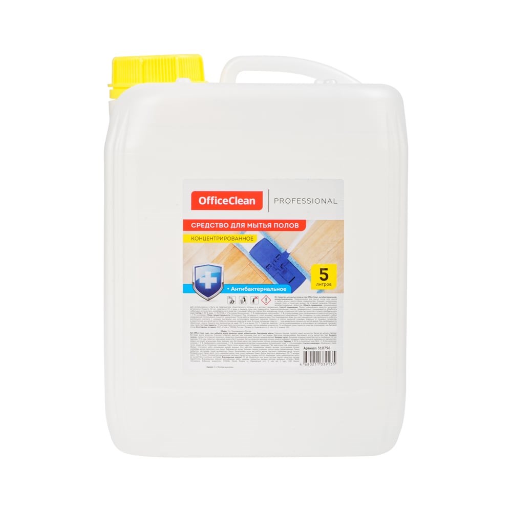 Антибактериальное средство для мытья полов OfficeClean Proffesional концентрат, 5 л 310796 предназначено для мытья полов и других влагостойких поверхностей. Антибактериальные вещества в составе эффективно обеззараживают очищенные участки. Благодаря специальной формуле не оставляет разводов на обрабатываемых поверхностях. Расходуется экономично, что увеличивает срок пользования средством.