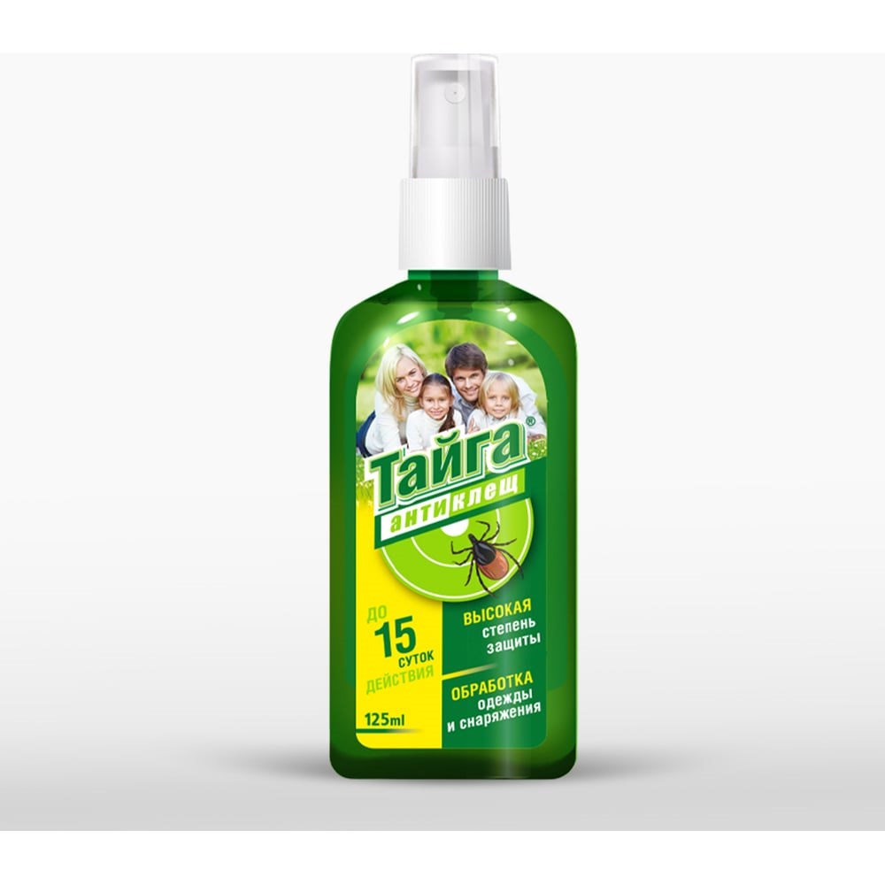 Спрей от клещей "Тайга" - это акарицидно-репеллентное средство длительного действия, предназначенное для обработки элементов одежды, москитных сеток, а также любых других изделий из ткани. Важно, что такое средство не только отпугивает клещей, комаров, мокрецов, москитов, мошек и других кровососущих насекомых, но и убивает их при попадании на обработанные участки. Средство начинает работать сразу после обработки поверхности и обеспечивает надежную защиту от клещей до 15 суток и до 10 часов защиты от прочих видов кровососущих насекомых. При обработке средство не оставляет пятен и разводов на белой, чёрной или цветной ткани.