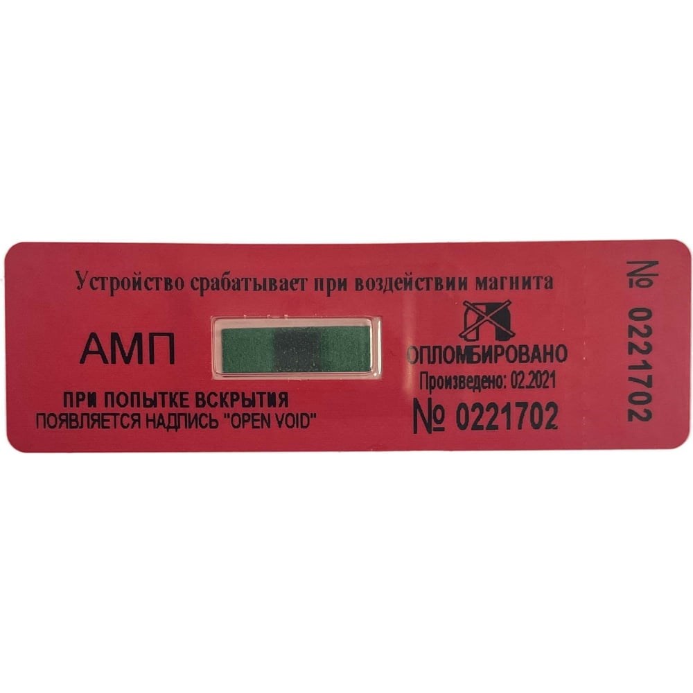Антимагнитная пломба - наклейка 20х65 мм, АМП 30 мтл представляет собой наклейку на основе пломбировочного скотча, снабженную магниточувствительной пластиной (пластина находится между клеевым слоем этикетки), с нанесенными на неё геометрическими фигурами.Каждая антимагнитная пломба - наклейка 20х65 мм, АМП 30 мтлимеет индивидуальный номер.При попытке отклеивания на самой антимагнитной пломбе - наклейке 20х65 мм, АМП 30 мтли на поверхности проявляются надписи "ВСКРЫТО", не исчезающие при повторном наклеивании.При воздействии магнитным полем силой свыше 25 мТл, структура антимагнитной пластины разрушается на молекулярном уровне и фигуры исчезают, оставляя однородное темно-зеленое поле.Антимагнитная пломба - наклейка 20х65 мм, АМП 30 мтл - надежная защита счетчиков от различных вмешательств извне. Наклейки используются службами ЖКХ, а также поставщиками водо- и энергоресурсов.