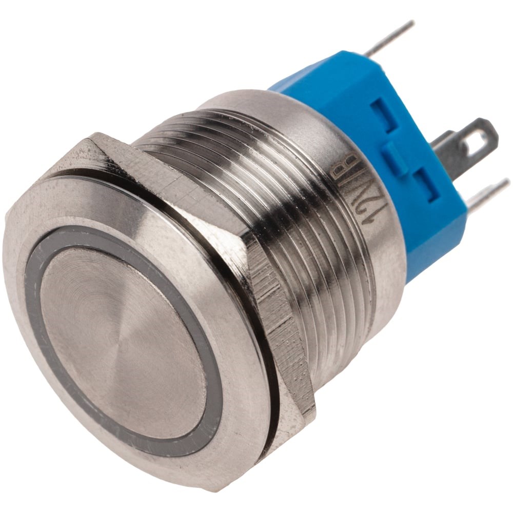 Антивандальная кнопка REXANT предназначена для коммутации электрических цепей путем включения-выключения питающего провода.Металлические кнопки применяются в местах, где существует большой риск их повреждения (на различных производственных линиях, в лифтовых кабинах, около входной двери и т.д.), а также для декоративного оформления панелей управления. Главными отличительными особенностями такой кнопки являются металлическое исполнение и неуязвимость контактной группы, что обеспечит ей долговечное функционирование.Изделие состоит из двух основных частей – лицевой части (головки) и контактной, и имеет пружинный возвратный механизм. Монтаж осуществляется без применения винтов на плоских панелях толщиной от 0.5 до 10 мм.Подключение проводов осуществляется с помощью винтовых зажимов, пайки или разъемом.Подсветка:12V LEDТип переключения: OFF-(ON) / ON-(OFF);Количество контактных групп: 1;Количество контактов в контактной группе: 3;Рабочая температура: -25…+85 ℃;Ресурс: 10 000 циклов.