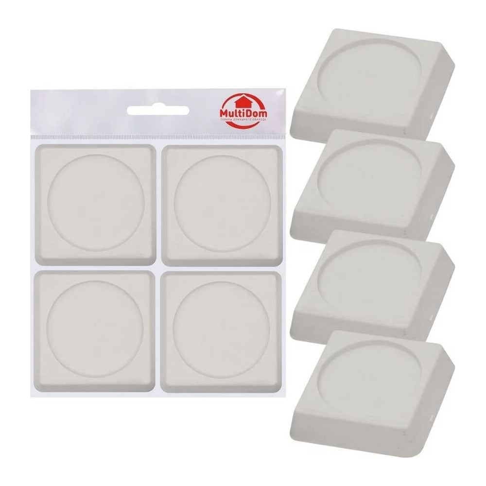 Антивибрационные подставки для стиральных машин и холодильников МУЛЬТИДОМ 4 шт. (квадрат, белый) 6x6 см ПТ76-143 позволяют значительно снизить нагрузку ножек техники на напольное покрытие, керамическую плитку, деревянные полы, а также предотвращает скольжение стиральной машины при работе в режиме отжима. Снижение вибрации при работе техники достигается оптимальной формой подставок и использованием высокопрочного материала.