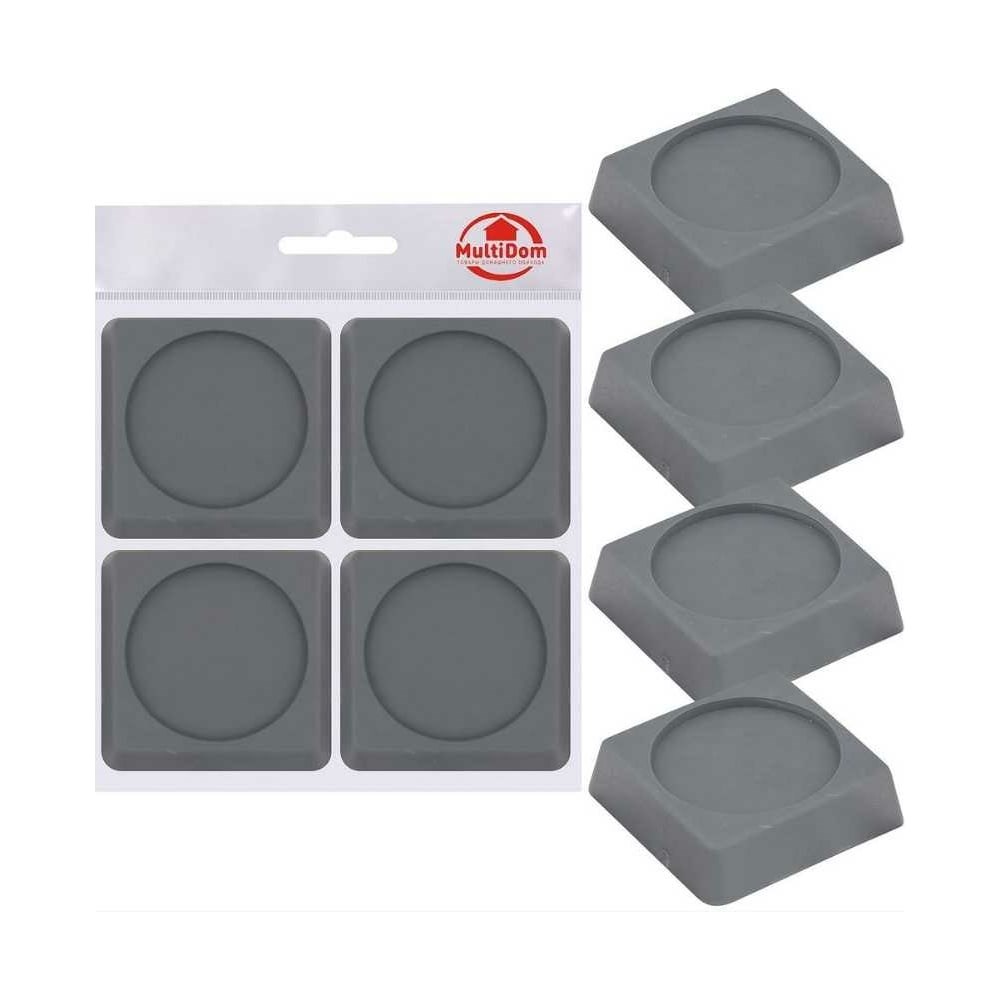Антивибрационные подставки для стиральных машин и холодильников МУЛЬТИДОМ 4 шт. (квадрат, серый) 6x6см ПТ76-144 позволяют значительно снизить нагрузку ножек техники на напольное покрытие, керамическую плитку, деревянные полы, а также предотвращает скольжение стиральной машины при работе в режиме отжима. Снижение вибрации при работе техники достигается оптимальной формой подставок и использованием высокопрочного материала.