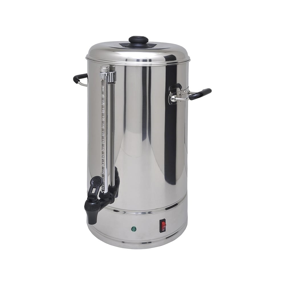 Аппарат для приготовления чая и кофе СР15 служит для моментальной подачи воды заданной температуры без предварительного подогрева и ожидания, а также для быстрого приготовления чая и кофе в кафе, барах и прочих заведениях общественного питания. Оснащен пластиковым краном для розлива, защитой от сухого хода, индикатором нагрева, шкалой уровня воды, выключателем, ситом для заваривания и фиксирующейся крышкой из нержавеющей стали 304, а также защитными ручками, которые не нагреваются. Производительность 20 л/час. Термопот не потребляет электричество в режиме простоя. Подогрев осуществляется проточно, подача воды начинается в течение примерно 5 секунд после нажатия кнопки - столько времени занимает нагрев до температуры кипения. В отличие от чайников, термопот не нагревает лишний объем воды, в результате чего значительно экономится электроэнергия. Что касается режима заваривания кофе и чая, он осуществляется путем многократного прохождения горячей воды через фильтр с молотым кофе. Аппарат с готовым кофе выставляется в торговый зал. Предназначен для использования в небольших кафе и столовых, предприятиях фаст-фуда. Прекрасно подходит для шведских столов, кофе-брейков.