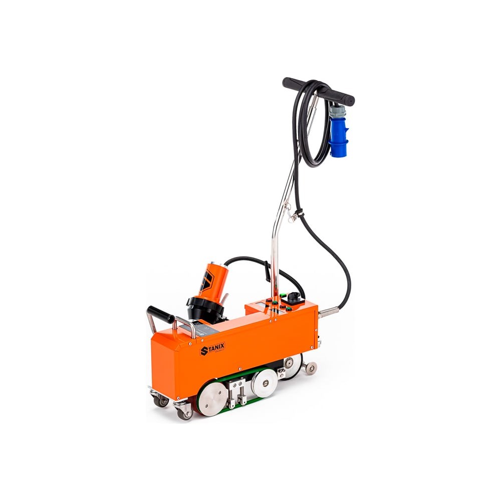 Аппарат горячего воздуха STANIX ROOFLEX - парапетный, модифицированный кровельный аппарат для сварки горячим воздухом. Имеет большое функциональное разнообразие в применении при сварке парапетов, вжелобе крыши, у края желоба, высококачественных термопластичных водонепроницаемых мембран (ПВХ, ТПО, EPDM, ECB, EVA и т.д.).Практичный в использовании аппарат STANIX ROOFLEX нового поколения используется для сварки внахлест мембранной кровли с шириною шва 40 мм. Имеет функцию автоматического начала сварки при опускании сварочного сопла в зону шва при помощи датчика движения.Для контроля качества монтажа, на двух цифровых дисплеях выдаются заданные и фактические параметры сварки (температура, скорость) и имеется возможность ими управлять. Скорость сварки от 2-15 метров в минуту, что, несомненно, порадует любого профессионала. Не требующий обслуживания бесщеточный двигатель с улучшенной версией обеспечивает высокую производительность и долговечность. Стабильность и высокое качество сварки, маленький и гибкий, легкий вес, высокая мощность.