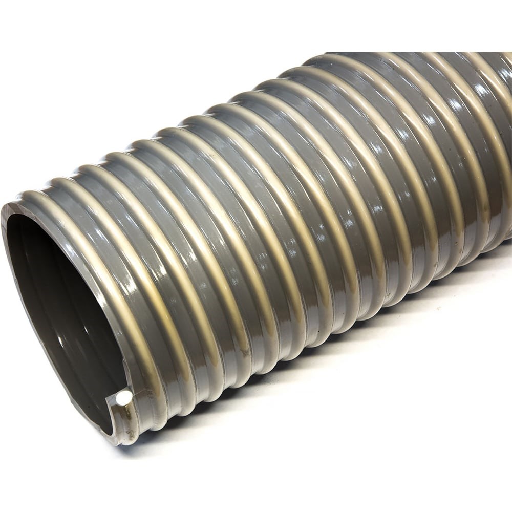 Описание: состоит из цилиндрической оболочки из пластифицированного поливинил хлорида с замоноличенным внутри ее прутком из непластифицированного поливинилхлорида. Внутренняя поверхность шланга гладкая, внешняя - волнистая. Цвет: непрозрачная серая стенка, белая спираль. Изготовлены методом последовательной экструзии. Тип: НВС - напорно-всасывающий шланг ПВХ, армированный спиралью ПВХ Серия, марка: 100SM (морозостойкие, тяжелые) - для установки на ассенизаторские машины, для перекачки пресной и морской воды, сточных вод, грязи и других густых масс, для гидротехнических систем Внутренний диаметр шланга: 76 мм (±1,5) Наружный диаметр шланга: 87 мм (±0,6) Рабочее давление: 0,4 МПа Рабочий вакуум: 0,05 МПа Работоспособны при t: от -40°С до +60°С Минимальный радиус изгиба: 340 мм