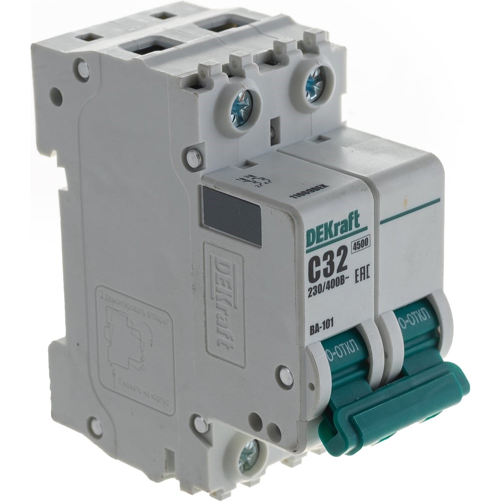 Автоматический выключатель серии ВА-101 Dekraft2Pноминальный ток 25 Ахарактеристика Сотключающая способность 4,5 кА5 монолитных заклепок повышают прочность корпуса аппарата. Сплошная лицевая панель обеспечивает безопасность эксплуатации аппарата. Боковые каналы охлаждения повышают стабильность работы при высоких температурах окружающей среды. Есть возможность установки дополнительных аксессуаров с левой стороны устройства. Аппарат на 100% совместим с корпусами Dekraft и Systeme Electric.