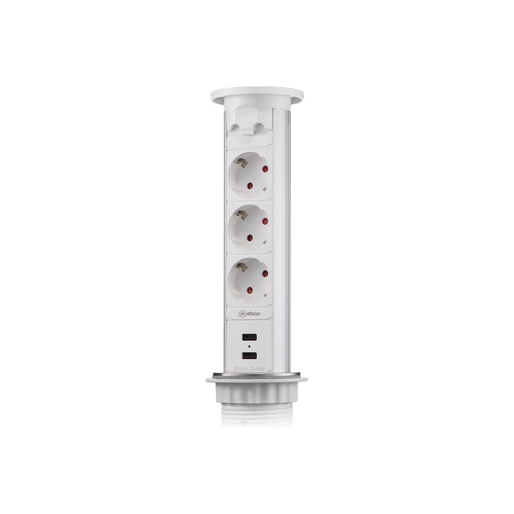 Автоматическая модель нового поколения Mebax 105J, стильная и функциональная. Открывается и закрывается нажатием на крышку. Форма крышки спроектирована так, чтобы исключить попадание влаги внутрь корпуса.Регулировка высотыПользоваться блоком комфортно и легко благодаря автоматическому электроприводу с плавным ходом. Автоматическое управление даёт возможность пользователю быстро выбрать необходимую высоту блока одним нажатием на крышку.Монтаж «вверх-ногами»Mebax 105J может быть установлен «вверх ногами» в подвесные шкафы кухонного гарнитура. Пока устройство не активно, его порты надёжно спрятаны внутри корпуса, защищающего от пыли.Защита от влагиMebax 105J — автоматическая версия 105W — блока с влагозащитной крышкой, которая защищает внутренние компоненты от капель воды при его установке вблизи «мокрых точек» (например, на кухне).