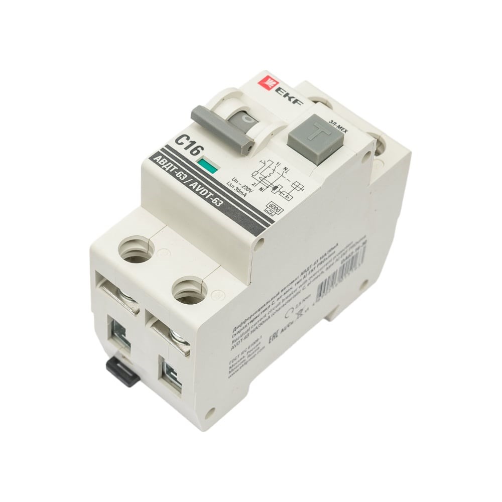 Автоматический выключатель дифференциального тока АВДТ-63 EKF PROxima представляет аппарат, сочетающий функции автоматического выключателя с электромеханическим или электронным УЗО. ПРИНЦИП РАБОТЫ При обнаружении автоматическим выключателем в защищаемом участке сети тока утечки (повреждения) на землю или сверхтока (тока перегрузки или короткого замыкания) происходит срабатывание устройства, приводящее к отключению защищаемой сети. Возможна коммутация алюминиевым и медным проводником.