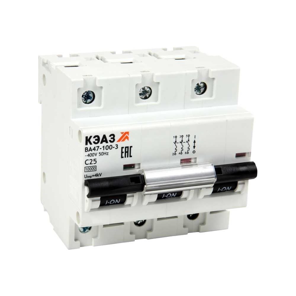 Автоматический модульный выключатель КЭАЗ ВА47-100-3C80-УХЛ3 (10кА) 318145