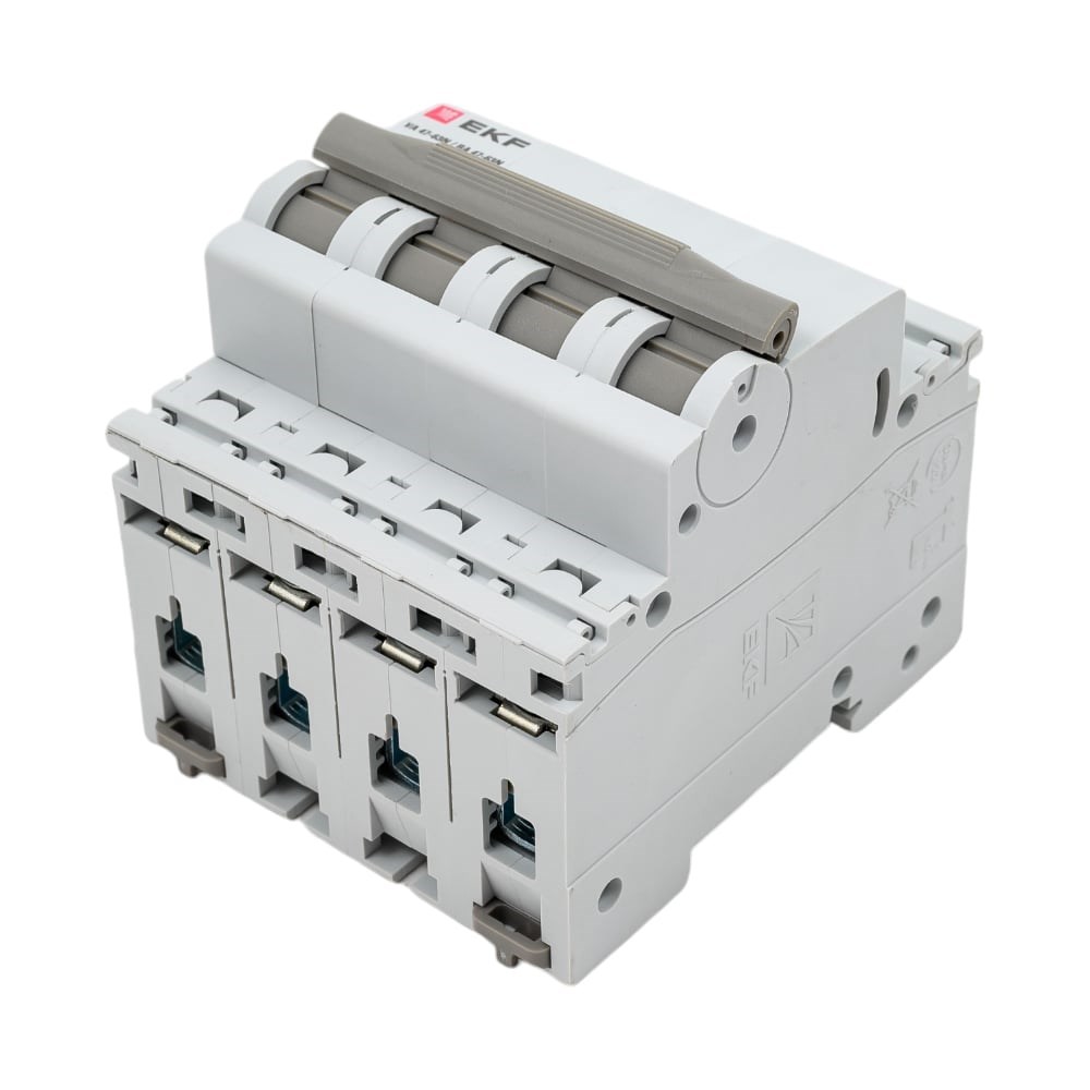 Автоматический выключатель EKF 4P 32А (C) 6кА ВА 47-63N PROxima M636432C является механическим коммутационным аппаратам и соответствуют ГОСТ IEC 60898-1. В выключателе имеется пластиковаяя крышка, закрывающая доступ к винтовым зажимам и служащая для опломбирования выключателя, что исключает несанкционированный доступ к проводникам. Корпус выключателя усилен дополнительными заклепками для обеспечения его максимальной жесткости. Выключатель оборудован удобной рукояткой управления, обеспечивающей надежное оперирование аппаратами. На лицевой панели автоматического выключателя имеется цветовой индикатор реального состояния контактов. Конструкция двухпозиционного зажима обеспечивает удобный монтаж выключателя на DIN-рейку.