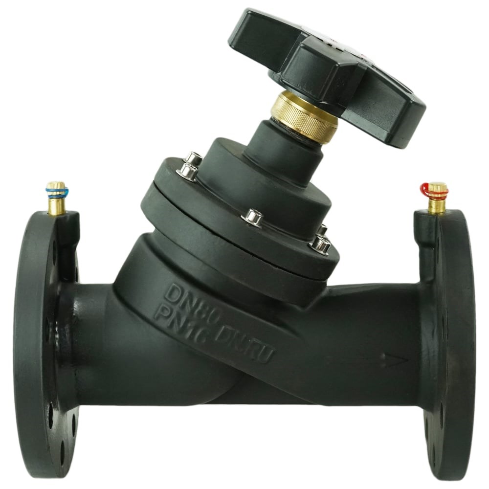 Клапан балансировочный чугунный DN.ru КБЛФ фланцевый с ниппелями применяется для гидравлической балансировки, регулирования и ограничения расхода теплоносителя в системах отопления, холодоснабжения и кондиционирования. Конструкция клапана представляет собой устройство вентильного типа. Установка перепада давления в соответствии с таблицей происходит путем перемещения штока с помощью рукоятки. Наличие ниппелей для подключения дифференциального манометра позволяет измерить расход теплоносителя с точностью ±5%. Основные технические данные: Номинальное давление PN: 16 бар Температура рабочей среды: от -5⁰C до +150⁰C Температура окружающей среды: от 0⁰C до +50⁰C Климатическое исполнение: УХЛ 3 по ГОСТ 15150-69 Рабочая среда: вода, масла, этилен- пропиленгликоль 50% Класс герметичности: «IV» по ГОСТ 9544-2015 Материал корпуса: чугун GGG50 (аналог ВЧ50) Материал штока, диска: нержавеющая сталь AISI 304 (аналог 08Х18Н10) Уплотнение: Viton Сферы применения: системы отопления, холодоснабжения и кондиционирования Строительная длина: 310 мм Пропускная способность: 140 м.куб./час Средний срок службы: 6 лет Товар может отличаться от представленного на фото, при выборе ориентируйтесь на технические характеристики.