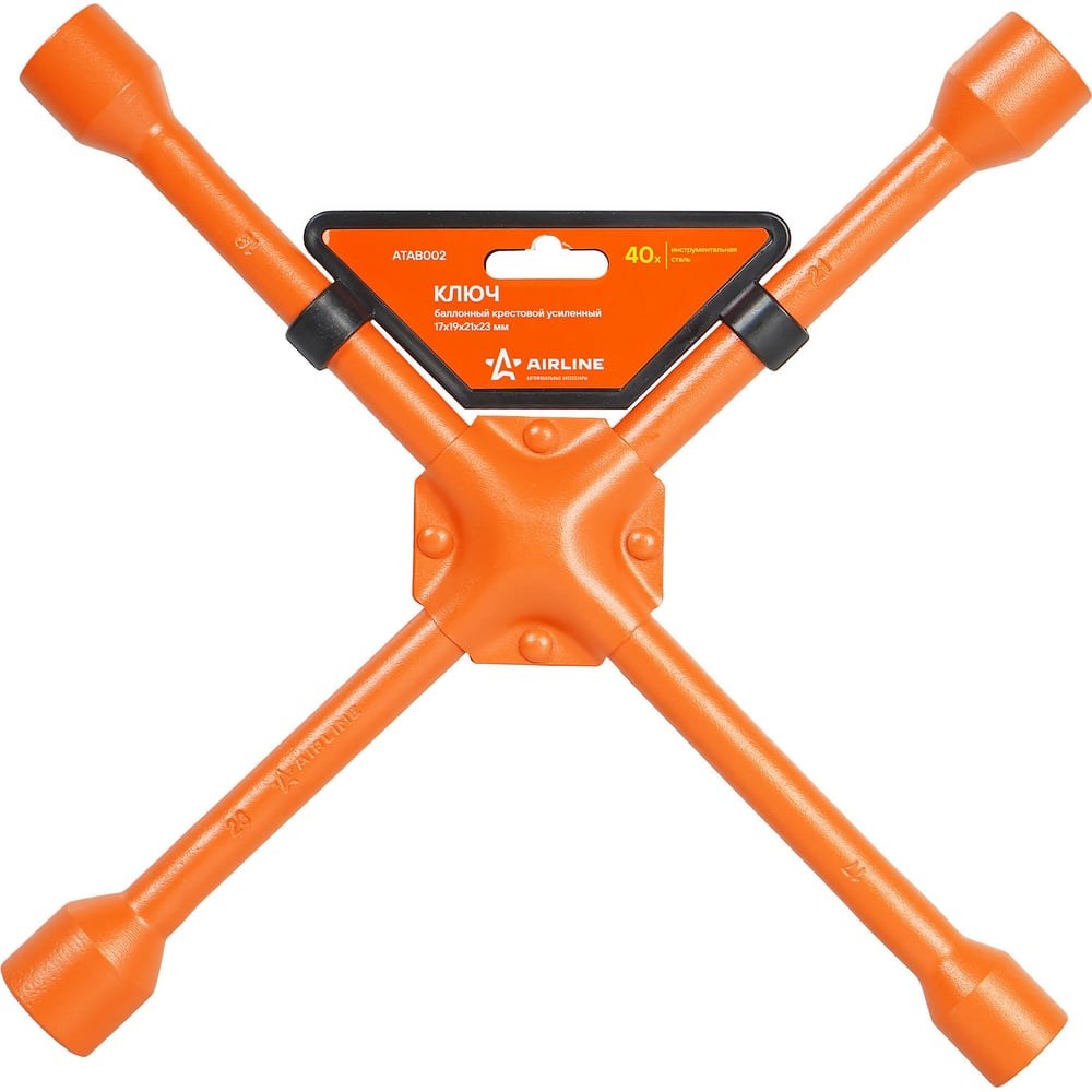 Баллонный крестовой усиленный ключ Airline 17x19x21x23, пластиковый подвес ATAB002 изготовлен из стали марки СТ45. Артикул: ATAB002 Состав: металл Размер: 17x19x21x23мм Длина: 350мм Комплектация: Ключ - 1 шт.