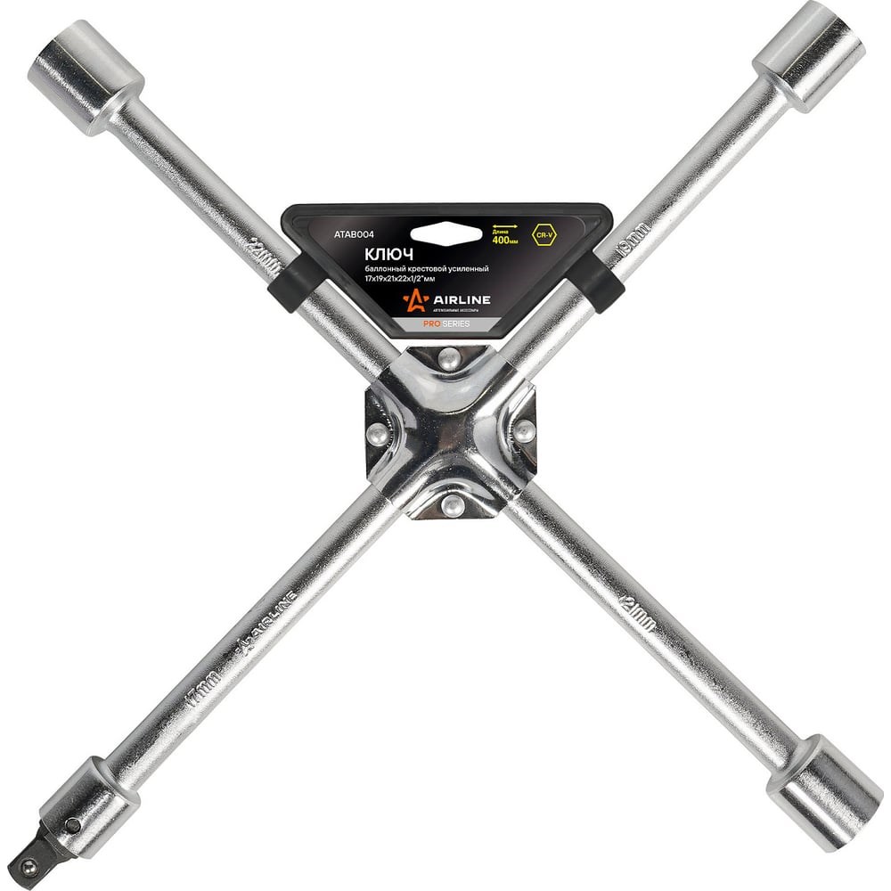 Баллонный крестовой усиленный ключ Airline PRO 17x19x21x22x1/2", 400 мм ATAB004 изготовлен из хромлванадиевой стали. Артикул: ATAB004 Состав: металл Размер: 17x19x21x22x1/2" Длина: 400мм