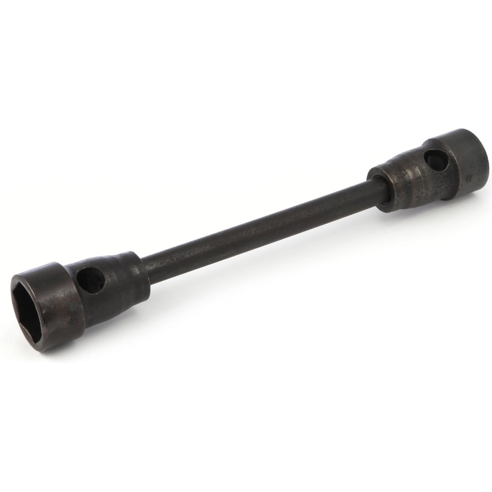 Балонный ключ Дело Техники 41×46 мм 112036 534461 представляет собой двухсторонний торцевой ключ, предназначенный для закручивания и откручивания крепежных элементов автомобильных колес. Может использоваться на станциях технического обслуживания, в автосервисах, а также для самостоятельного ремонта автомобиля. Ключ оснащен отверстиями под вороток для удобной работы. Инструмент выполнен из качественной легированной стали высокой прочности.