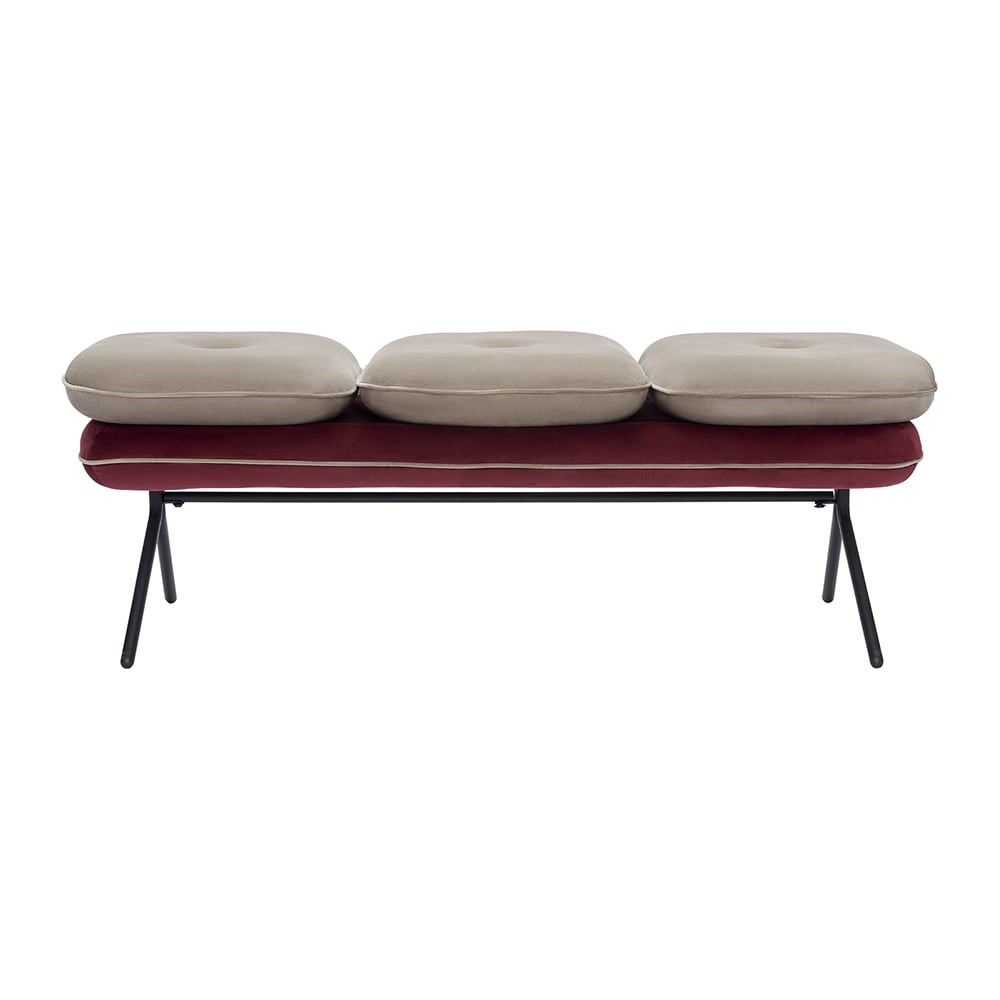 Банкетка Pea с мягкой обивкой из бархатистого велюра станет настоящим украшением интерьера и идеальным выбором для ценителей качественной и элегантной мебели. Она может использоваться как отдельно, так и в сочетании с туалетным или журнальным столиком. Обивка из велюра создает приятные тактильные ощущения, смотрится презентабельно, придавая мебели изысканный вид. Удобные раздельные сиденья с наполнителем из пенополиуретана обеспечивают комфортную посадку. Ножки из железа имеют порошковое покрытие, которое защищает их поверхность от коррозии, потускнения цвета и механических повреждений. Стабильная и прочная конструкция делает банкетку устойчивой, надежной и долговечной. Дизайн актуален для классических и современных стилевых направлений. Рекомендуется регулярно пылесосить мебель с помощью специальной насадки – резиновой или мягкой щетки. Образовавшиеся пятна можно удалять губкой или салфеткой со слабым мыльным раствором воды. Запрещается использовать абразивные материалы и агрессивную бытовую химию.