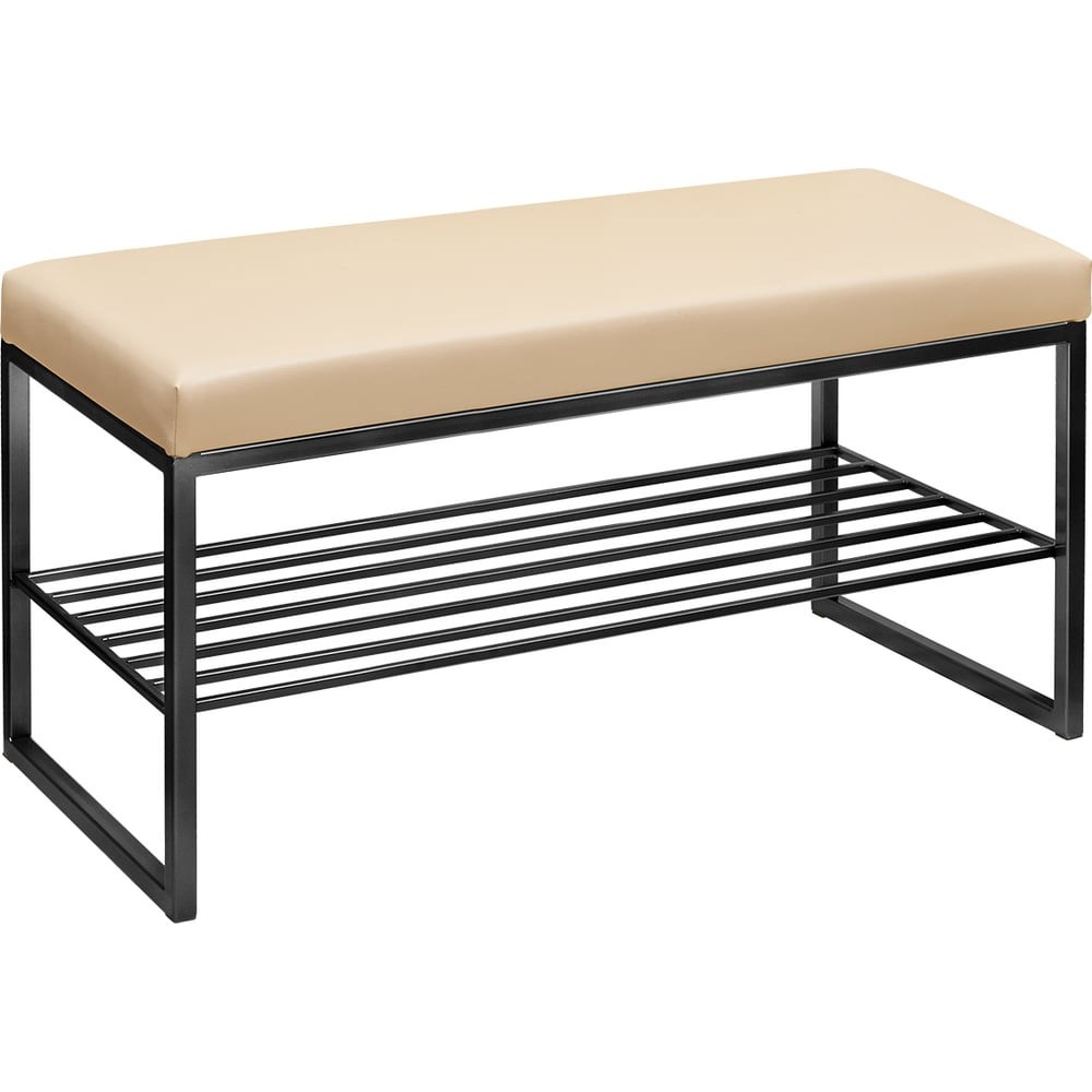 Банкетка RUBY MINI с черным основанием и мягкой подушкой из экокожи. Характеристики банкетки RUBY MINI: • размеры: (длина х ширина х высота) 850 х 400 х 450 мм, • вес – 11,45 кг, • высота подушки — 80 мм, • обивка — экокожа, • наполнитель — пенополиуретан, • максимальная нагрузка — 120 кг. Банкетка с подушкой из экокожи отличается элегантным видом и комфортной посадкой. Мягкая обивка с высокой износостойкостью. Ткань прошла тест Мартиндейла на истираемость — 150 000 циклов. Состав материала: полиуретан, хлопок, плотность, 342 г/кв.м. Основание банкетки изготовлено из стали с полимерным покрытием. Стальной каркас изготовлен из профильной трубы 20х20 мм. Собственное производство обеспечивает надежность и эстетику сварных швов металлической мебели. Инструкция по уходу: держите вдали от источников света и сильного тепла, для увеличения срока эксплуатации рекомендуется обработать поверхность водоотталкивающей пропиткой для натуральной кожи, избегайте попадания прямых солнечных лучей, не использовать абразивные средства, уборка влажной губкой. Стильная банкетка подойдет для прихожей, спальни, гостиной и кабинета. Банкетка лофт добавит изысканности интерьеру квартиры, офиса, салона и загородного дома. Банкетка отлично сочетается со стеллажами LOFT. Банкетку доставляем в собранном виде в надежной упаковке.