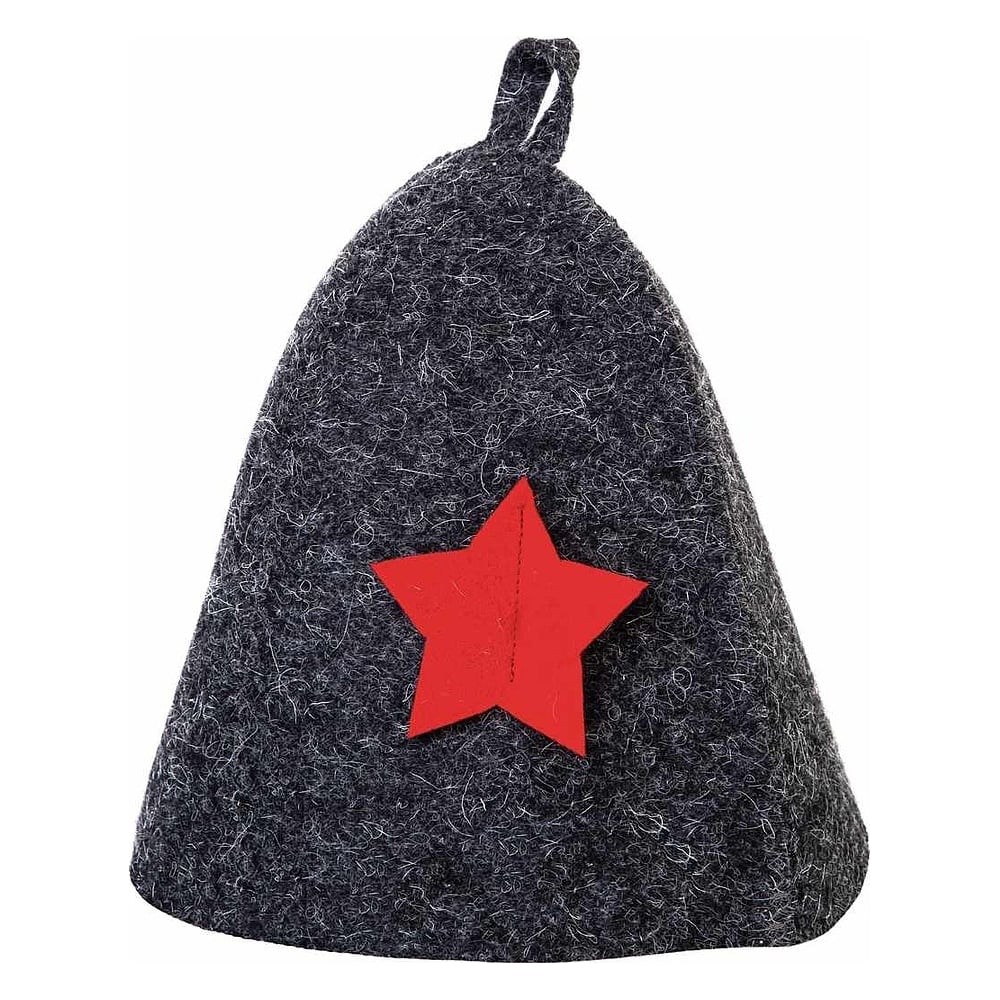 Шапка для бани со звездой сделана из серого войлока и украшена оригинальной аппликацией в видео красноармейской звезды. Шапка является основным банным аксессуаром. Этот предмет защитит вашу голову от перегрева и сделает банные процедуры приятными. Обладает рядом положительных свойств: антибактериальна, не электризуется и не впитывает запахи! Отлично пропускает воздух и тепло, из-за чего всегда поддерживает комфортную температуру и влажность. Шапка универсальна по размеру и оснащена удобным подвесом-петлей, что позволяет с легкостью просушить её после парения. Размер: 54-60